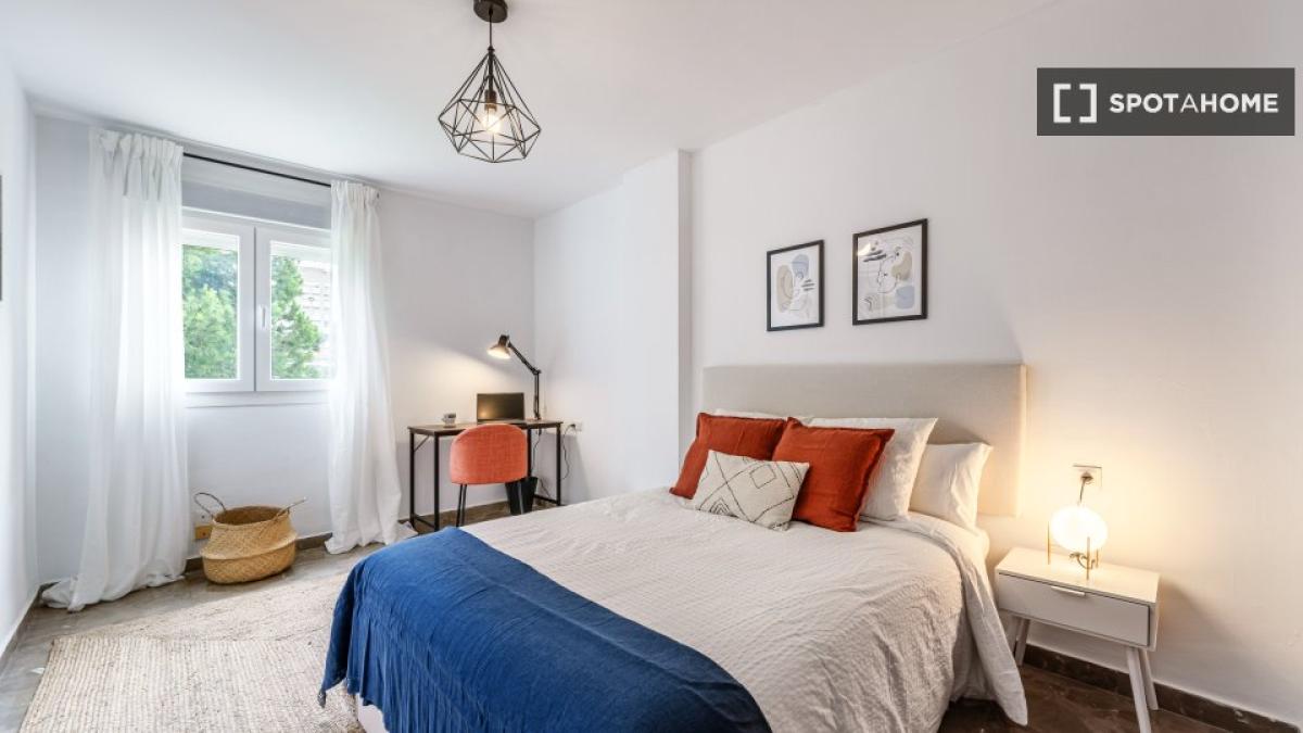 Amplio dormitorio en soleada casa compartida en Málaga