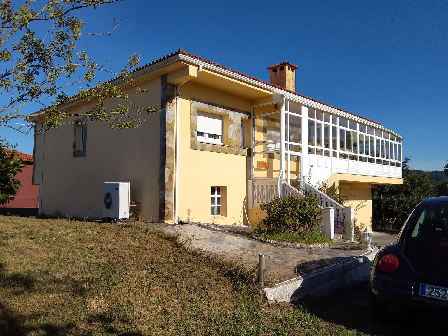 Excelente oportunidad, venta directa por los propietarios, casa en planta superior de 4 dormitorios, salón, cocina, un baño, un aseo y amplia terraza acristalada en carpintería de aluminio. Planta baja destinada a garaje y almacén con un baño. Está construida en una parcela urbana de 2170 metros que se puede dividir para construir otra vivienda. La finca está completamente cerrada, con portal automático y algunos árboles frutales. La vivienda dispone de calefacción por aerotermia (nueva) y suministro propio de agua, además de conexión al agua municipal. Está ubicada en una zona residencial muy tranquila y con unas vistas espectaculares, a menos de 10 kms de betanzos y a tan solo 3 minutos de la autovía A-6.