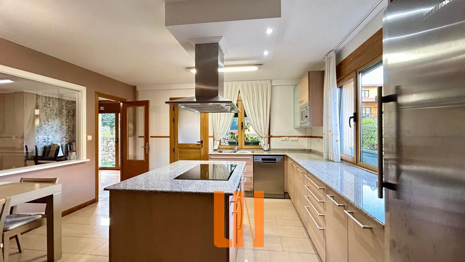 Chalet en listo para entrar a vivir en Urbanización Monte Anchouza, la Zapateira. Se trata de una vivienda de 325m² distribuida en sótano, planta baja, y primera planta. Planta baja se compone de amplio salón comedor con cocina totalmente amueblada y equipada con todos los electrodomésticos con salida al jardín de 200m² con su gran porche, 1 dormitorio, cuarto de baño completo, zona de lavandería, garaje para dos vehículos. Planta primera encontramos 3 amplios dormitorios, el principal con gran servicio de armarios empotrados y cuarto de baño, dos cuartos de baño completos. Sótano, actualmente con amplia zona diáfana y un despacho acristalado. Calefacción individual por gas natural, suelos en parquet, carpintería interior de roble, ventanas de aluminio de apertura oscilobatiente con cristal climalit, persianas motorizadas, aspiración centralizada, alarma, iluminación exterior. Situado a 15 minutos del centro de la ciudad a través de la nueva 3º ronda. A pocos metros del casino de la Zapateira, del supermercado, de la farmacia. Rodeado de los mejores colegios privados de la ciudad. Muy luminoso con orientación del jardín al Sur. Excelente estado de conservación. Urbenorte.