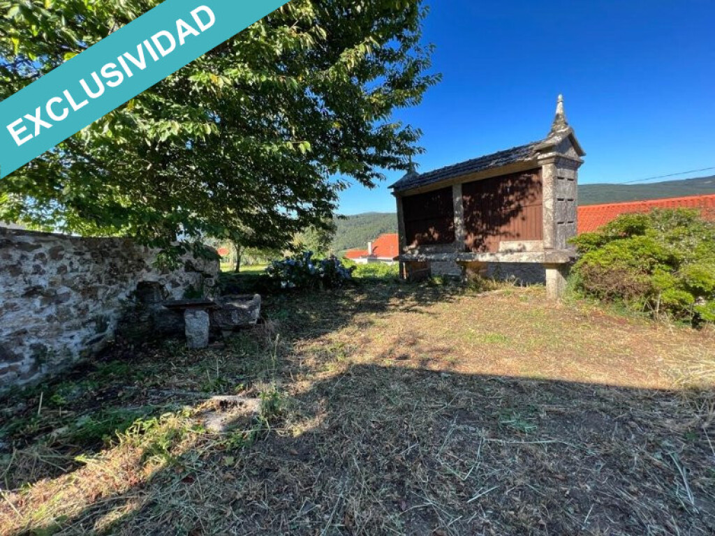 En el lateral de la casa tenemos un pequeño jardín con un precioso cobertizo que se podría restaurar y un hórreo, un magnífico espacio para disfrutar con tu familia y amigos.