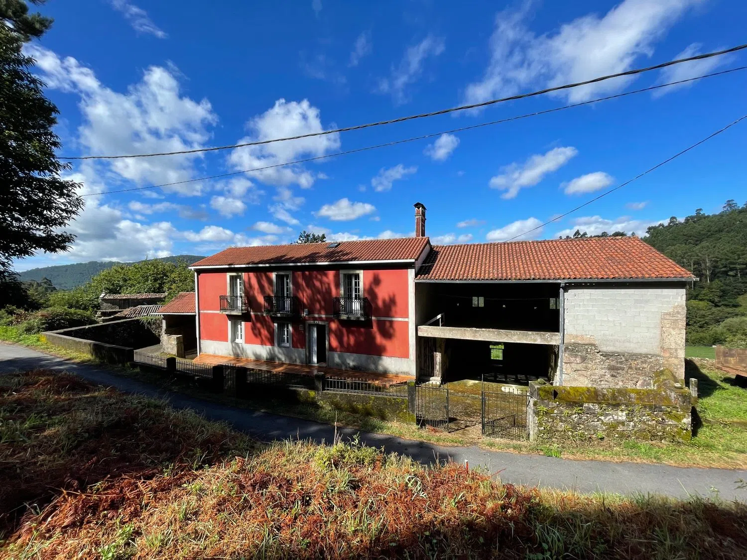 SE VENDE, casa de PIEDRA, con finca de 1.685 m2 y con Hórreo. La propiedad está distribuida en 168 m2 de vivienda; Alpendre grande y Alpendre pequeño. Vivienda Planta Baja: 84 m2. Donde está la cocina con acceso al salón comedor; un aseo y una zona de usos varios en la que hay una lareira. Vivienda Planta Primera: 84 m2. En la que tiene un amplio pasillo distribuidor con acceso al balcón y cuatro habitaciones, de las cuales dos tienen balcón. La planta superior está diáfana. Alpendre Norte: de dos plantas que tiene 91 m2 por planta. Alpendre Sur: de 49 m2. Construida en piedra, en el año 1900, se ha reformado en 1987. La casa tiene las placas de madera. Todas las estancias tienen ventanas al exterior y es muy soleada. El suelo es de madera. Las ventanas son de Aluminio de doble acristalamiento. Dispone de Fosa Séptica. El suministro de agua es de manantial proveniente de un depósito vecinal. En la huerta tiene un bonito hórreo de 16 pies. La casa tiene la fachada orientada al Este. Está situada en un entorno muy tranquilo, rodeada de mucho verde y con muy poco tráfico rodado. La playa está a 12 km (16 min). La aldea dispone de internet. El pueblo más próximo donde hay todo tipo de servicios, es Serra de Outes y está a 6 km. El Aeropuerto de Santiago de Compostela está a 60 km. La Casa no se puede comprar con hipoteca al NO está Inscrita en el Registro de la Propiedad.