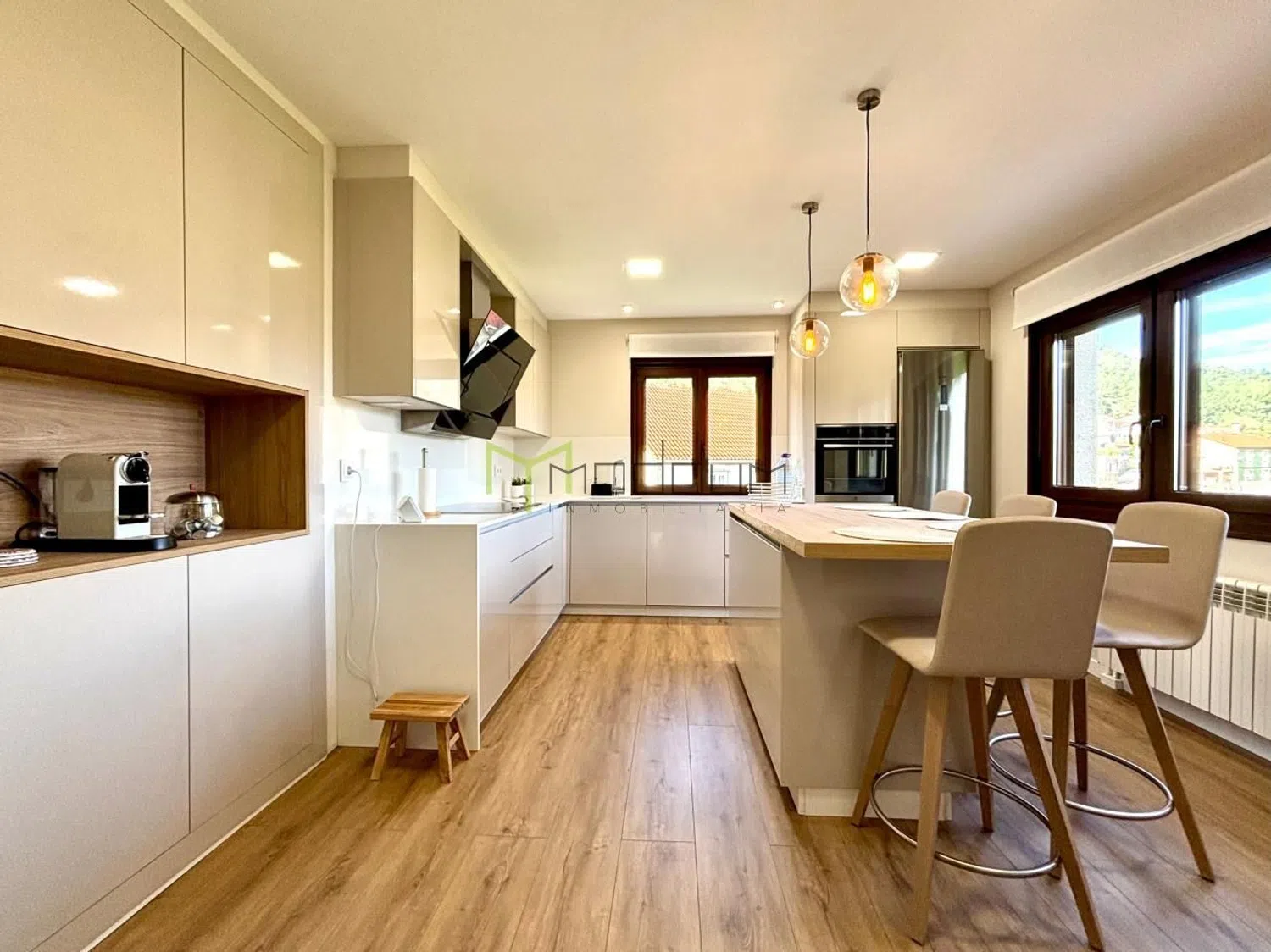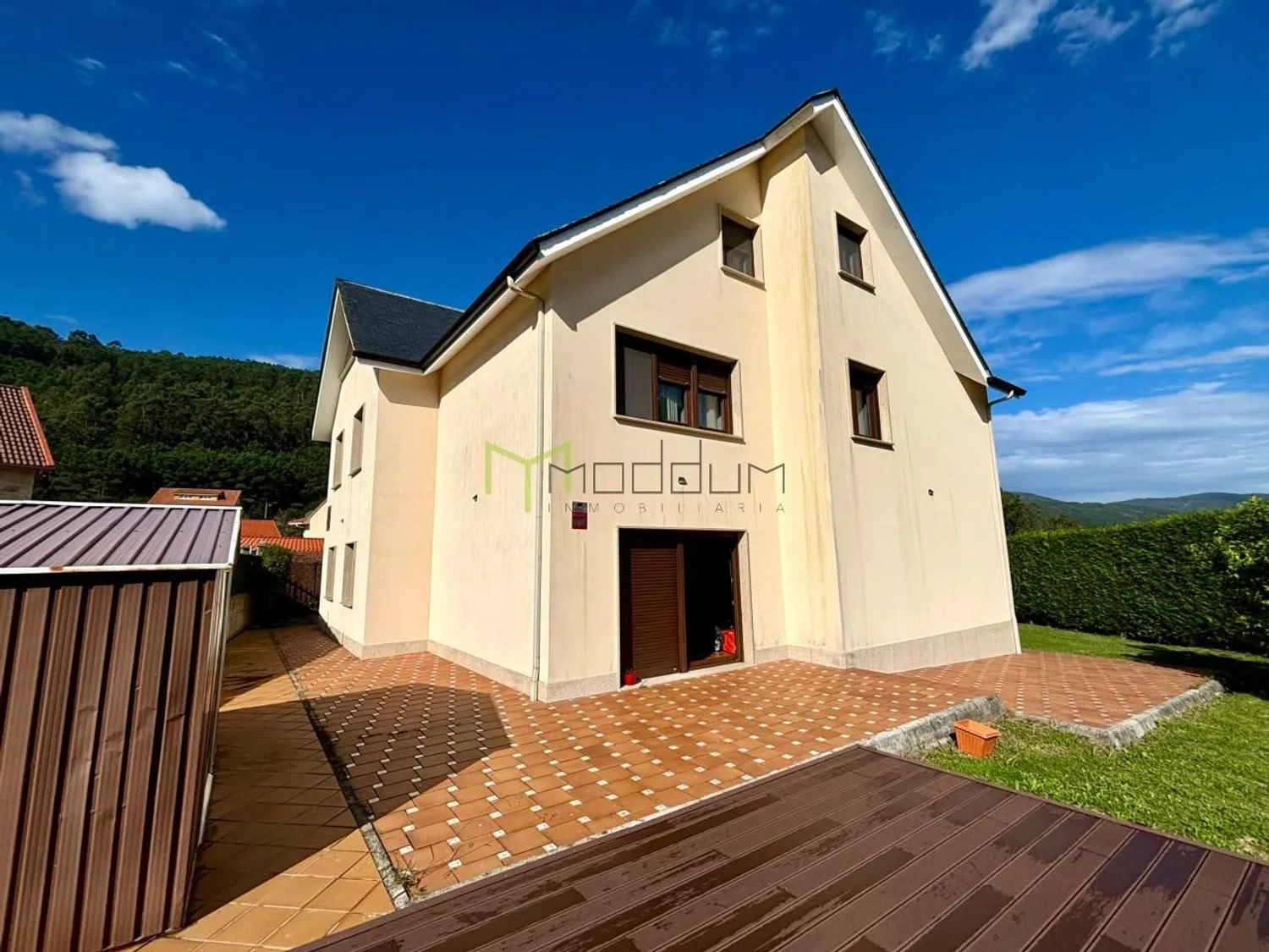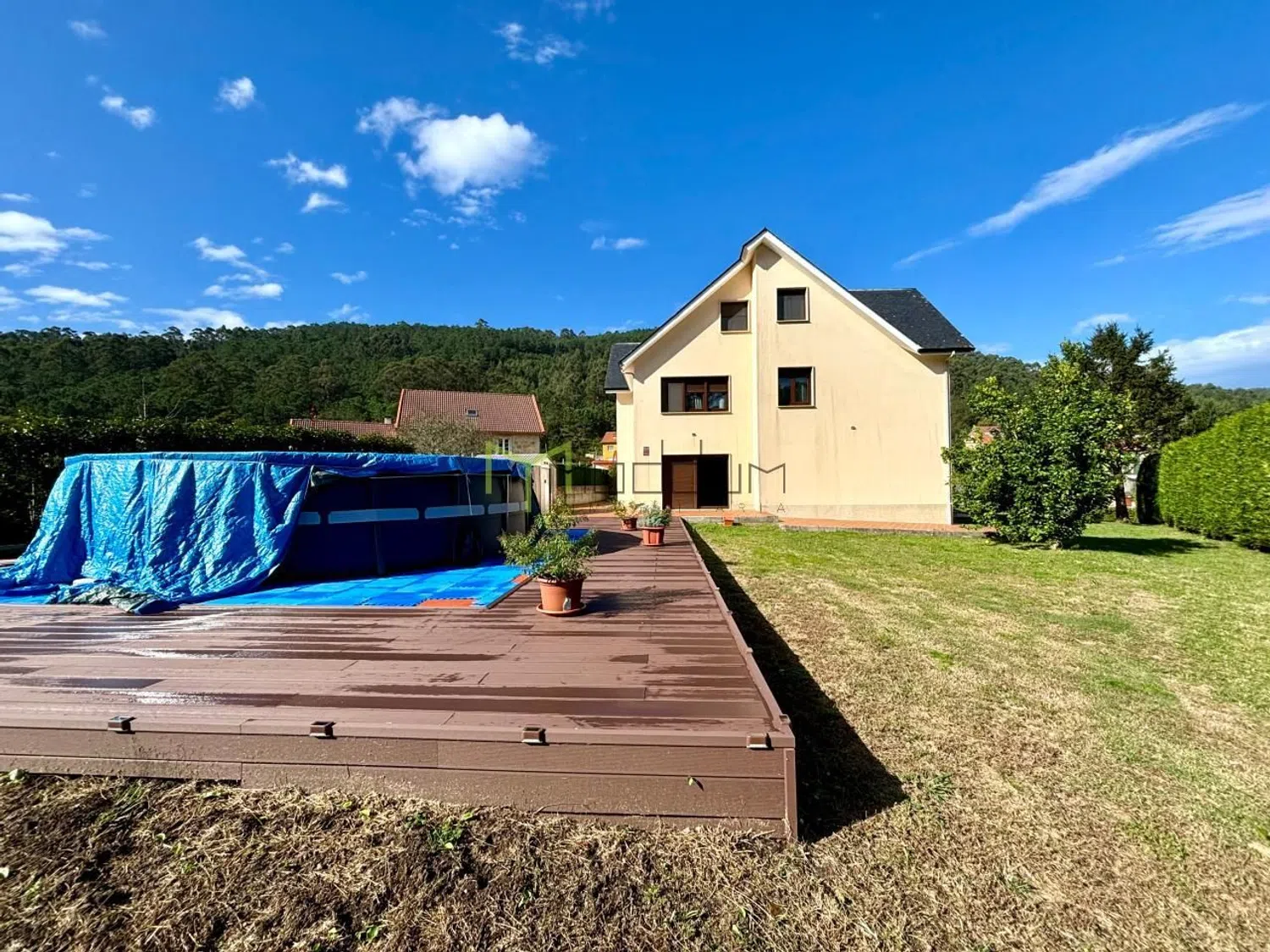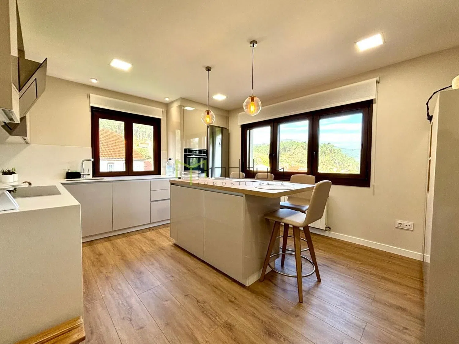 En la encantadora localidad costera de Muros, A Coruña, se encuentra esta magnífica vivienda de 383 metros cuadrados construidos sobre una parcela de 1657 metros cuadrados, rodeada de naturaleza y con unas vistas impresionantes, ofreciendo un remanso de paz y privacidad en un entorno privilegiado. Desde el momento en que se accede al interior a través de su amplio hall de entrada, se puede apreciar la calidad de los acabados y el cuidado por cada detalle. En la planta principal, la vivienda cuenta con una cocina espaciosa y recientemente reformada, equipada con electrodomésticos de primera calidad para satisfacer todas las necesidades, así como un salón que deslumbra con una cristalera panorámica frontal, ideal para disfrutar del paisaje en cualquier época del año, y que además cuenta con una elegante chimenea que aporta calidez al ambiente. Esta planta incluye dos dormitorios cómodos y luminosos, además de dos baños completos, uno de ellos en suite para mayor privacidad. En la planta superior se encuentran cuatro dormitorios adicionales, todos amplios y bien distribuidos, junto a un baño completo que asegura la comodidad de toda la familia o invitados. En la planta baja, esta casa ofrece un generoso espacio destinado a garaje, junto con una zona de lavandería independiente que facilita las tareas del hogar. Además, cuenta con un área versátil con salida directa a la piscina, perfecta para acondicionarse como gimnasio o sala recreativa, brindando un espacio ideal para el disfrute y el bienestar. La construcción se distingue por un excelente aislamiento en la fachada, el tejado de pizarra que garantiza durabilidad, y la reciente renovación de todas las ventanas, ahora oscilobatientes de PVC con cristal climalit de gran perfil, lo que proporciona una eficiencia energética superior y un confort térmico excepcional. También se han actualizado las instalaciones de fontanería, asegurando una infraestructura moderna y sin preocupaciones, mientras que el área de la piscina exterior invita a relajarse y disfrutar del aire libre en cualquier momento. La propiedad incluye un portal automático que facilita el acceso y aporta un extra de comodidad y seguridad. Dispone de agua con traída comunal y posibilidad de realizar acometida al agua de traída municipal. Además dispone de fosa séptica de fibra. La ubicación de esta casa es inmejorable, en una zona tranquila y bien conectada con Santiago de Compostela, lo que permite disfrutar tanto de la belleza y la serenidad de Muros como de la cercanía a una de las ciudades más emblemáticas de Galicia, siendo una opción perfecta tanto como residencia habitual o como segunda vivienda para escapar del bullicio y disfrutar de la calidad de vida que ofrece esta región.