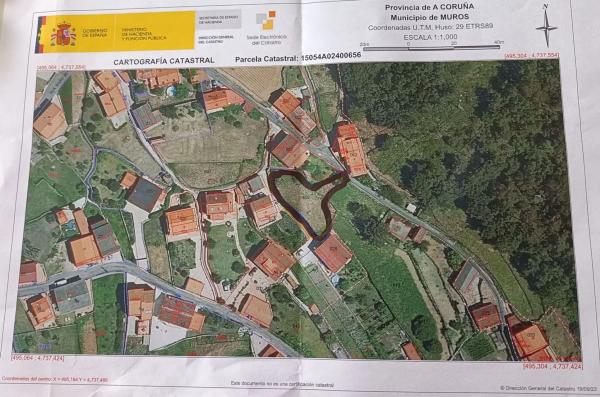 PARTICULAR vende finca urbana de 589m^2 en el municipio de Muros (A Coruña), zona alcantarillado, agua de la traída, con cableado de internet, a 300m de la playa de Anido, con buen vecindario a 1 km del casco urbano. 2º tel se atenderá por las tardes.