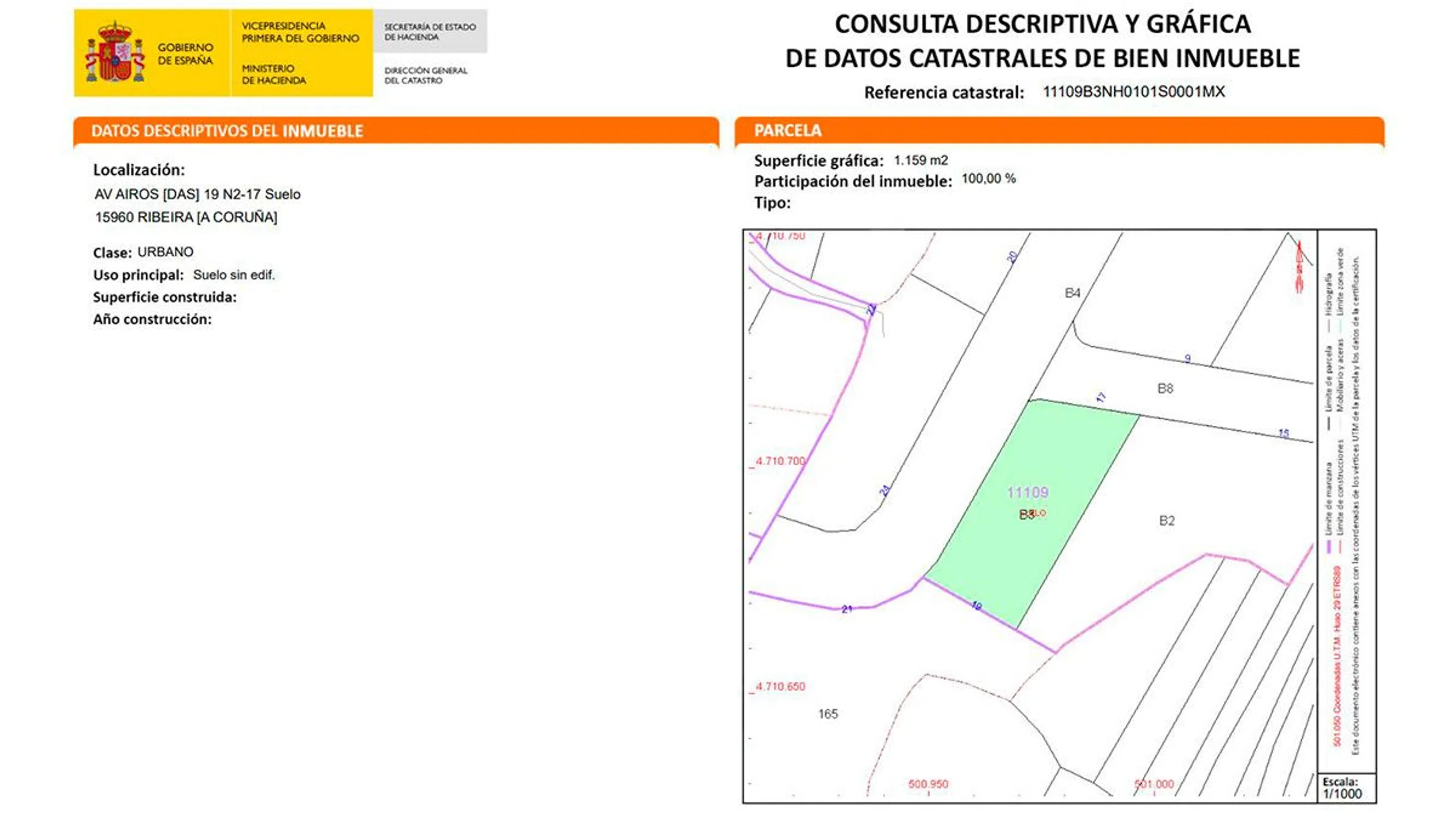 SUELO FINALISTA EN RÚA PERÚ, SUZ-4 FONTÁN – RIBEIRA Una oportunidad real para construir futuro, con el respaldo de Inmobiliaria Metro-Cuadrado. En plena Rúa Perú, dentro del ámbito SUZ-4 FONTÁN, se encuentra esta Parcela 10M, un suelo finalista con todo el potencial para convertirse en un proyecto residencial ambicioso y con sentido. Hablamos de 1.124 metros cuadrados de superficie, ubicados en una zona estratégica de Ribeira, con una edificabilidad residencial total de 3.270 metros cuadrados. Este terreno no es una promesa vacía: ya está clasificado y listo para desarrollar. En otras palabras: aquí no vienes a esperar, vienes a construir. Este suelo es ideal para promotores, cooperativas o inversores que saben leer el momento, el mercado y el territorio. La zona cuenta con buenas comunicaciones, servicios próximos y una demanda residencial estable. La parcela forma parte de un desarrollo urbano bien definido, lo que aporta seguridad jurídica y claridad al proceso de construcción. La operación de venta está sujeta a IVA o IGIC, según el caso, por lo que el comprador deberá cumplir con los requisitos establecidos por la normativa vigente para que la transacción tribute conforme a la ley. Los impuestos no están incluidos en el precio final. ________________________________________ Detalles clave: •Ubicación: Rúa Perú, SUZ-4 FONTÁN, Ribeira (A Coruña) •Superficie del terreno: 1.124 m² •Edificabilidad permitida: 3.270 m² •Uso principal: Residencial •Clasificación urbanística: Suelo finalista con gestión urbanística ya desarrollada ________________________________________ Desde Metro-Cuadrado, te invitamos a consultar sin ningún compromiso. Queremos ayudarte a que tu próximo proyecto nazca en un terreno con historia, con forma y con futuro. Porque no se trata solo de metros cuadrados: se trata de visión, y de saber dónde poner los cimientos.