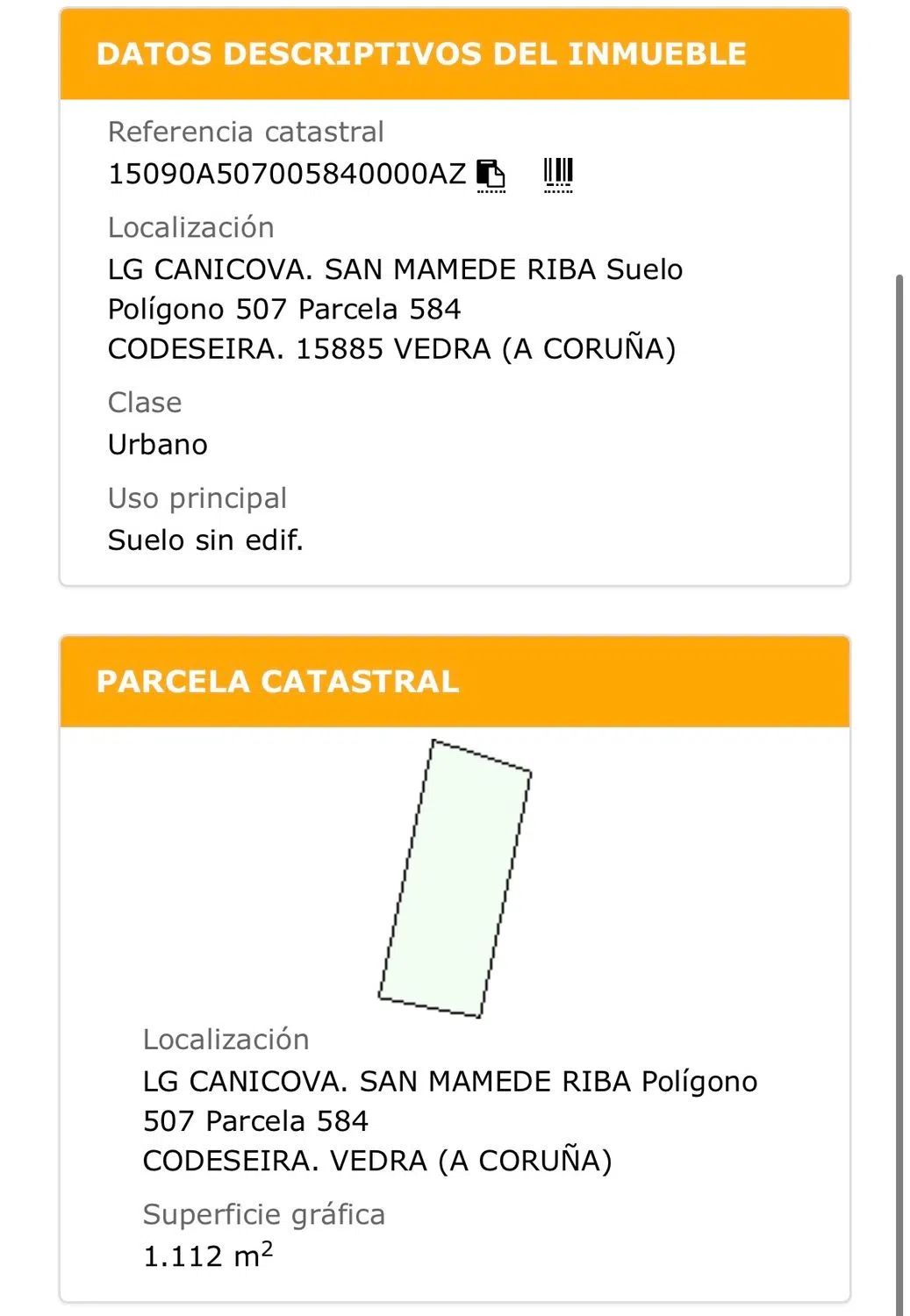 Se vende finca urbana San Mamed de Rivadulla - Canicova, Concello de Vedra. 1112 m2. A 3 km de la salida 15 de la autopista AP-53 Santiago-Ourense y a 20 min de Santiago de Compostela por N-525. Precio negociable.
