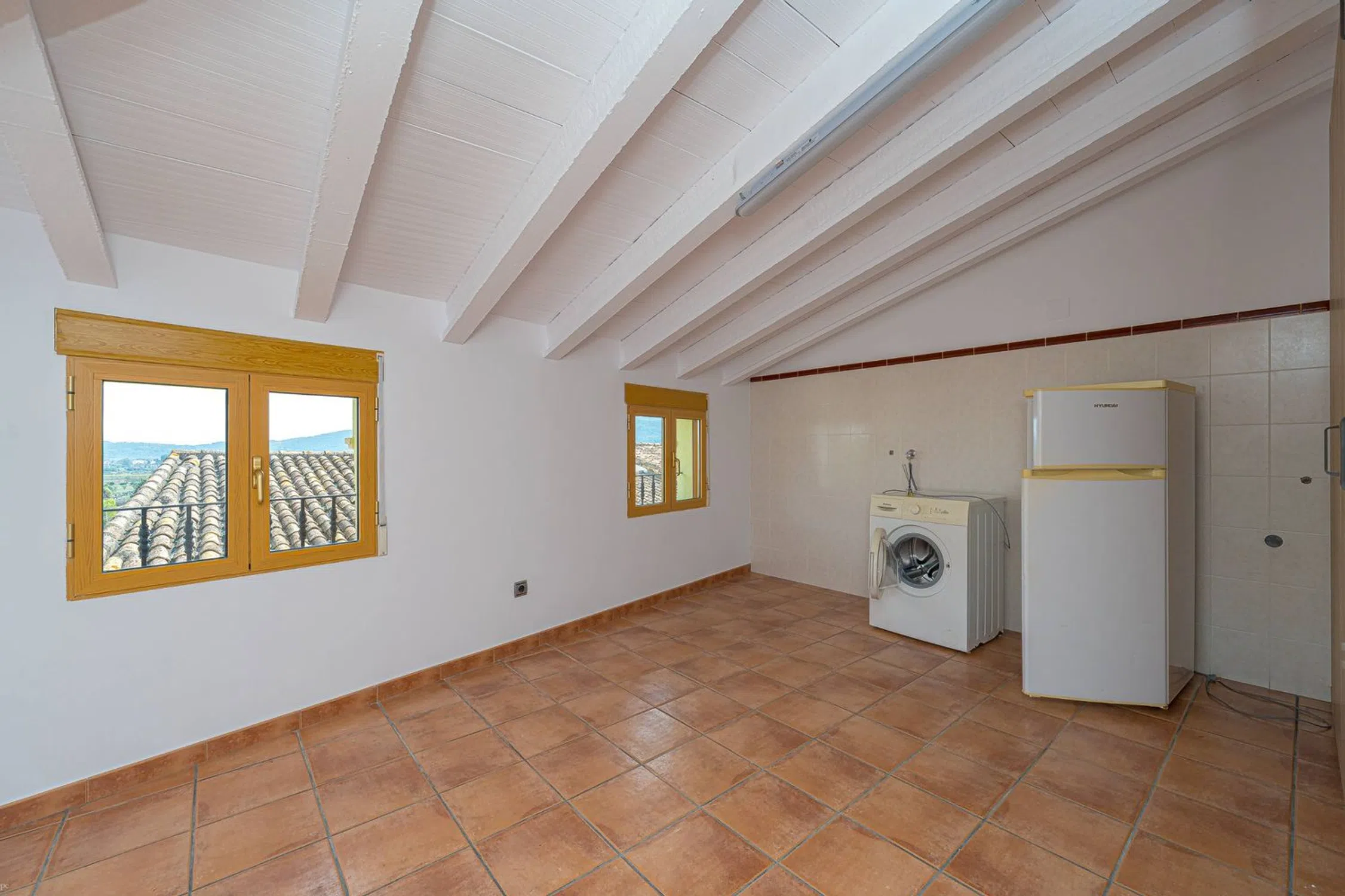 Hermosa casa adosada en alquiler con opción a compra. Situada en el mismo corazón de Alcalalí, a solo unos pasos de la encantadora plaza, la iglesia histórica, la farmacia local y las panaderías tradicionales, esta casa adosada de tres plantas bellamente renovada, con un garaje privado, ofrece una combinación perfecta de comodidad moderna, estilo español tradicional y espectaculares vistas a la montaña. Diseñada pensando en la luz, el espacio y la funcionalidad, es un hogar ideal para quienes buscan autenticidad y calidad en uno de los pueblos más pintorescos de la Marina Alta. El exterior conserva su encanto auténtico y rústico, con tonos cálidos de piedra y un carácter mediterráneo clásico. La planta baja le da la bienvenida con una amplia sala de estar con elegantes suelos de porcelánico gris, grandes ventanas con marcos de madera natural y balcones franceses que llenan el espacio de luz solar. El diseño abierto incluye calefacción por radiadores y aire acondicionado en todas las estancias para garantizar una temperatura ideal durante todo el año. Una cocina moderna totalmente equipada muestra azulejos andaluces en tonos de azul y amarillo, elegantes armarios blancos y electrodomésticos de acero inoxidable. En este nivel también encontrará un baño elegante con una moderna ducha a ras de suelo. La primera planta alberga la zona principal de descanso, con dos dormitorios cómodos que ofrecen amplios armarios empotrados, acabados modernos y acceso al exterior a través de balcones franceses con vistas a las tranquilas calles de Alcalalí. Uno de los dormitorios incluye un baño en suite bellamente diseñado, mientras que un segundo baño renovado con gusto, con una espaciosa ducha a ras de suelo decorada con elegantes azulejos verdes. La última planta es donde la vivienda realmente brilla, un espacio abierto de estilo rústico con vigas blancas vistas, suelos de terracota y una acogedora segunda cocina equipada con placa de inducción. Esta encantadora zona se abre directamente a una gran terraza privada con impresionantes vistas panorámicas de los tejados del pueblo, las montañas circundantes y las palmeras del horizonte. Es el lugar perfecto para comer al aire libre, relajarse o simplemente disfrutar del ambiente sereno de Alcalalí. A solo un corto paseo de los cafés, restaurantes y la plaza central, esta casa captura la esencia de la vida auténtica de pueblo mientras ofrece todas las comodidades de una renovación moderna. Luminosa, elegante y lista para entrar a vivir, representa una oportunidad única para experimentar la verdadera vida mediterránea en uno de los pueblos históricos más encantadores de Alicante.