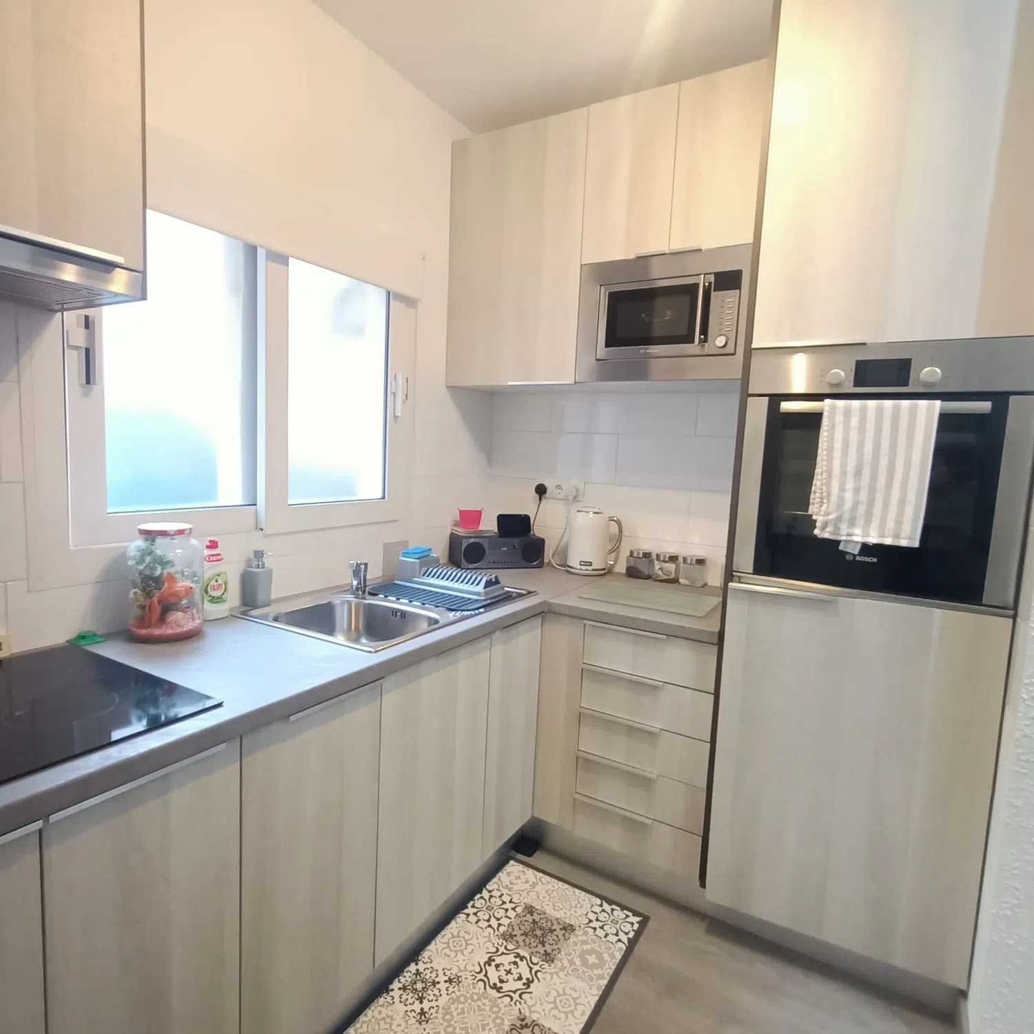 Im Herzen von Albir, direkt gegenüber einem Supermarkt, befindet sich dieses beeindruckende Duplex mit zwei Schlafzimmern und zwei großzügigen Terrassen. Im Erdgeschoss erwartet Sie ein einladender Wohnbereich sowie eine stilvoll renovierte Küche und ein Schlafzimmer. Im oberen Bereich finden Sie ein Badezimmer, ein weiteres Schlafzimmer und zwei offene Terrassen mit einer Fläche von 25 m² und 8 m², die perfekten Raum für Entspannung im Freien bieten.
