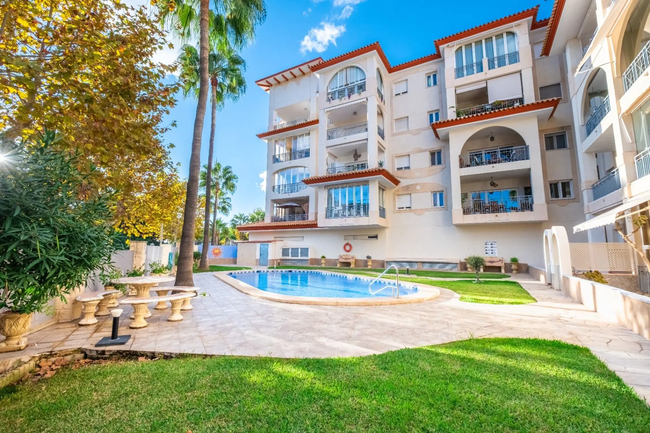 Apartamento en Venta en AlbirApartamento espacioso de 3 habitaciones y 2 baños en un edificio bien mantenido en Albir. Construido en 2001, la propiedad ofrece 95 m² de espacio habitable e incluye aire acondicionado, plaza de garaje para un coche y acceso a una piscina comunitaria rodeada de un pequeño jardín. El apartamento cuenta con una luminosa sala de estar y comedor con acceso a una terraza. La cocina está completamente equipada y tiene un pasaplatos que conecta directamente con el salón, creando una conexión cómoda entre ambos espacios. Hay tres dormitorios y dos baños, ambos modernos y bien mantenidos. El apartamento da al sureste, proporcionando mucha luz natural y agradables vistas a la montaña. El edificio tiene ascensor y cuenta con una hermosa escalera de caracol que aporta carácter y estilo. Ubicado en Albir, el apartamento está a poca distancia de tiendas, restaurantes y la playa. Distancias: Playa: aproximadamente 10 min a pie Aeropuerto de Alicante: aproximadamente 60 kmValencia: aproximadamente 140 km.