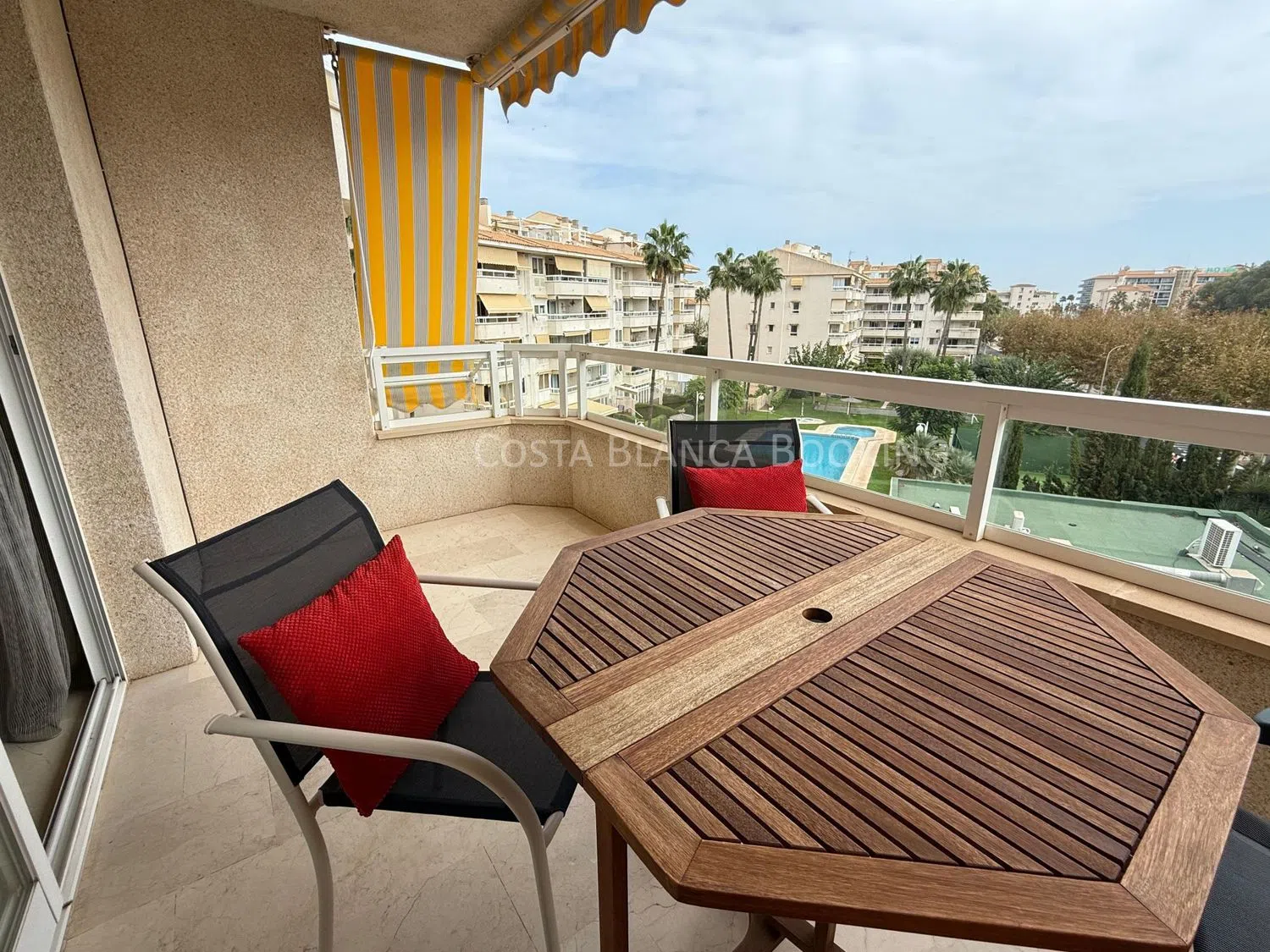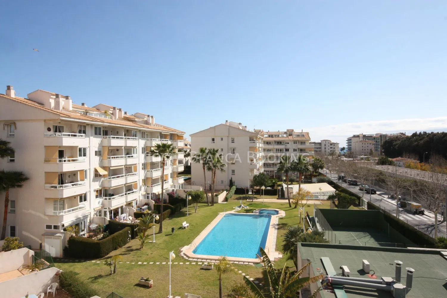 Entdecken Sie ein großzügiges und lichtdurchflutetes Eckapartment mit drei Schlafzimmern, das sich in einem äußerst beliebten Wohnkomplex befindet. Zu den Annehmlichkeiten gehören ein gemeinschaftlicher Außenpool, ein beheizter Innenpool und eine Tennisplatz. Vom Balkon genießen Sie eine atemberaubende Aussicht auf die Berge und die gepflegten Gartenanlagen.