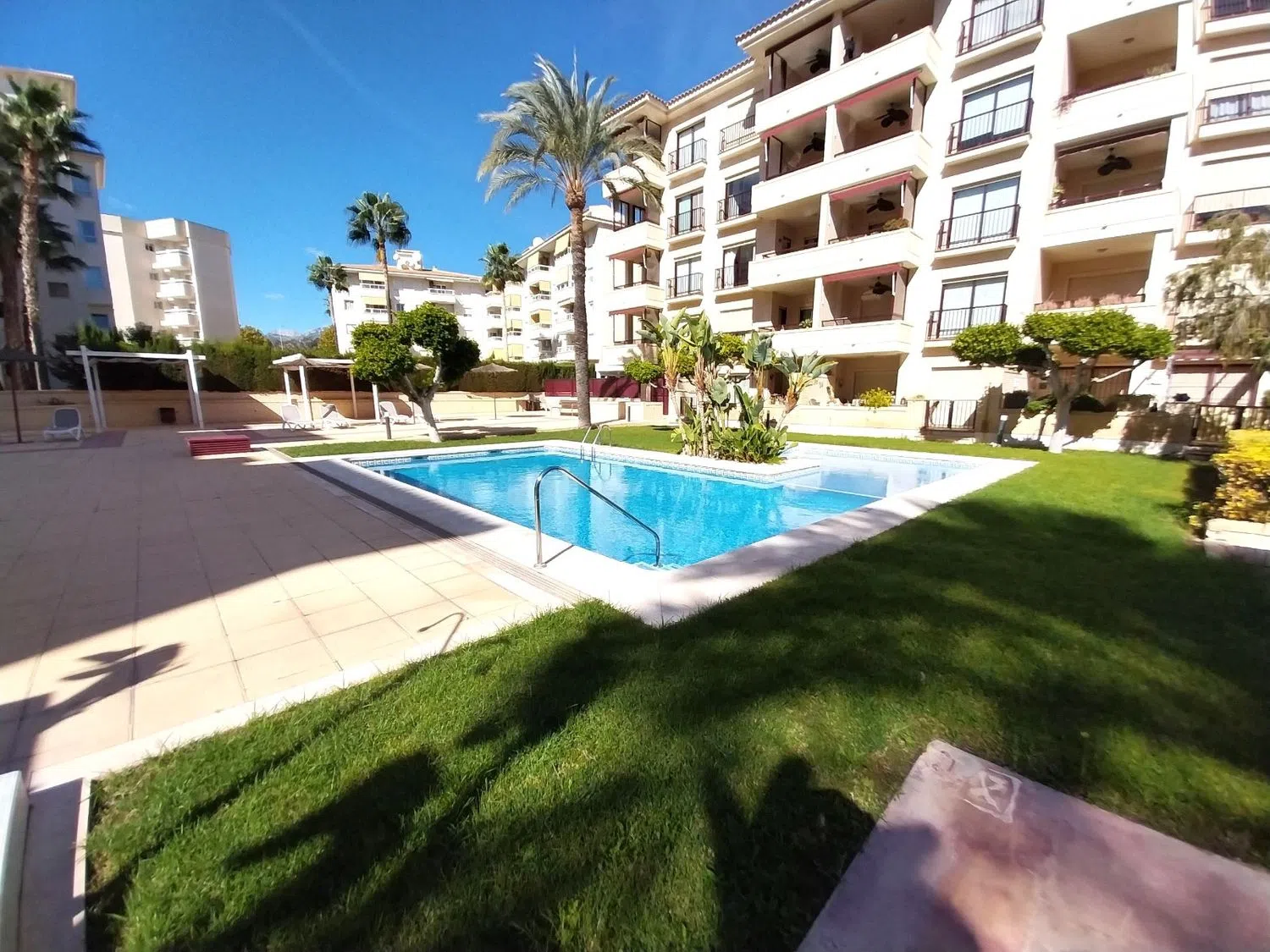 Das Anwesen befindet sich in einer sehr sicheren und zentralen Wohnanlage, die mit einer großen Gemeinschaftspoolanlage und gepflegten Gemeinschaftsbereichen ausgestattet ist. Es gibt reichlich Parkmöglichkeiten direkt vor der Tür in der Gemeinschaftsstraße.