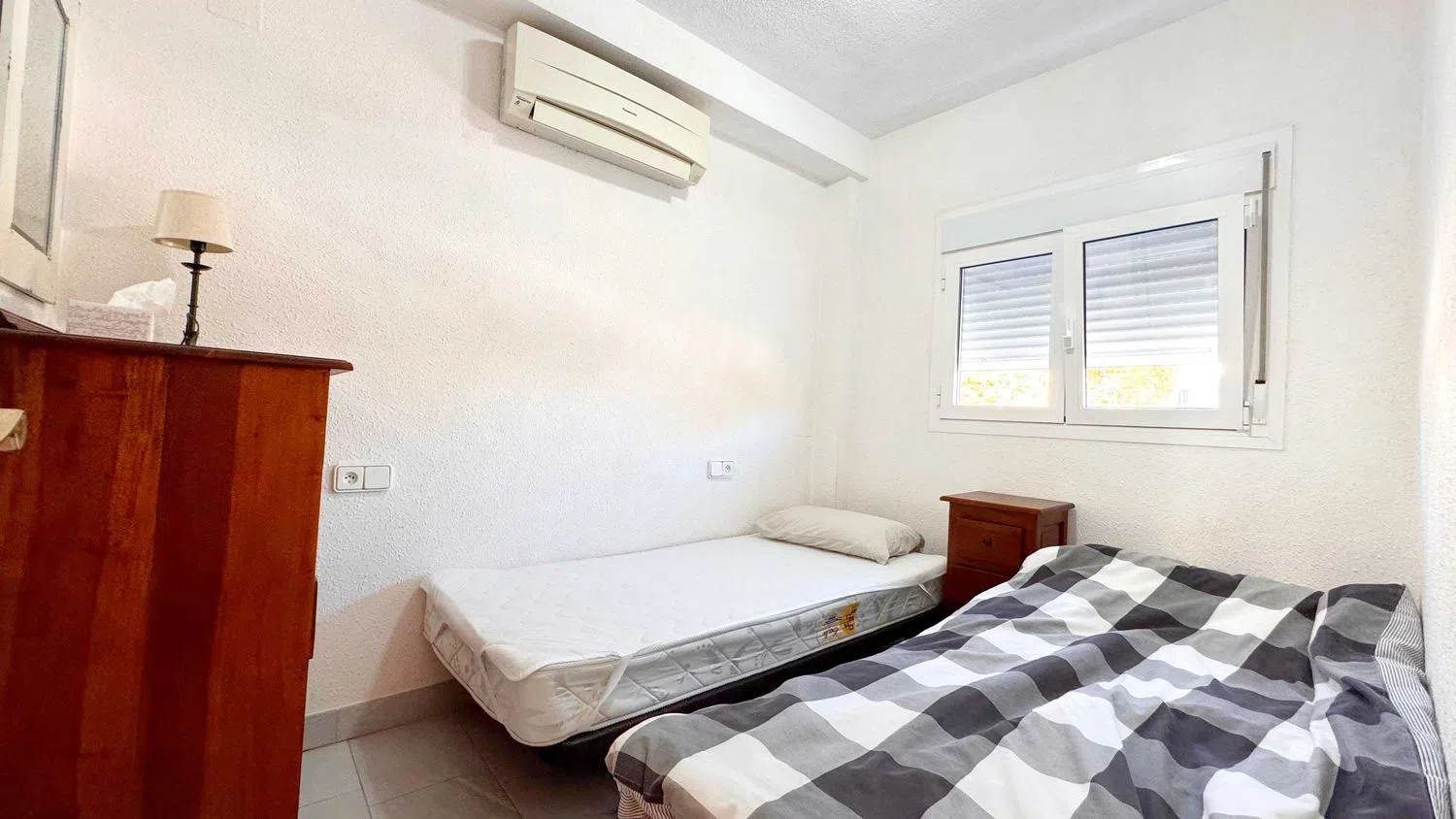 Zu den weiteren Annehmlichkeiten gehören Klimaanlage in den Schlafzimmern sowie Schallschutzfenster für optimalen Komfort. Die Wohnanlage bietet zudem einen gemeinschaftlichen Swimmingpool und zeichnet sich durch eine freundliche Nachbarschaft aus. Dieses Apartment ist sowohl ideal als Ferienhaus als auch für eine ganzjährige Wohnsituation.