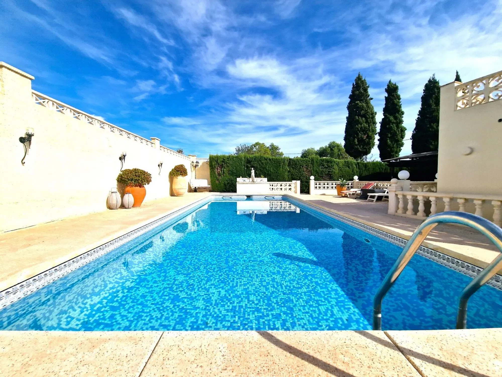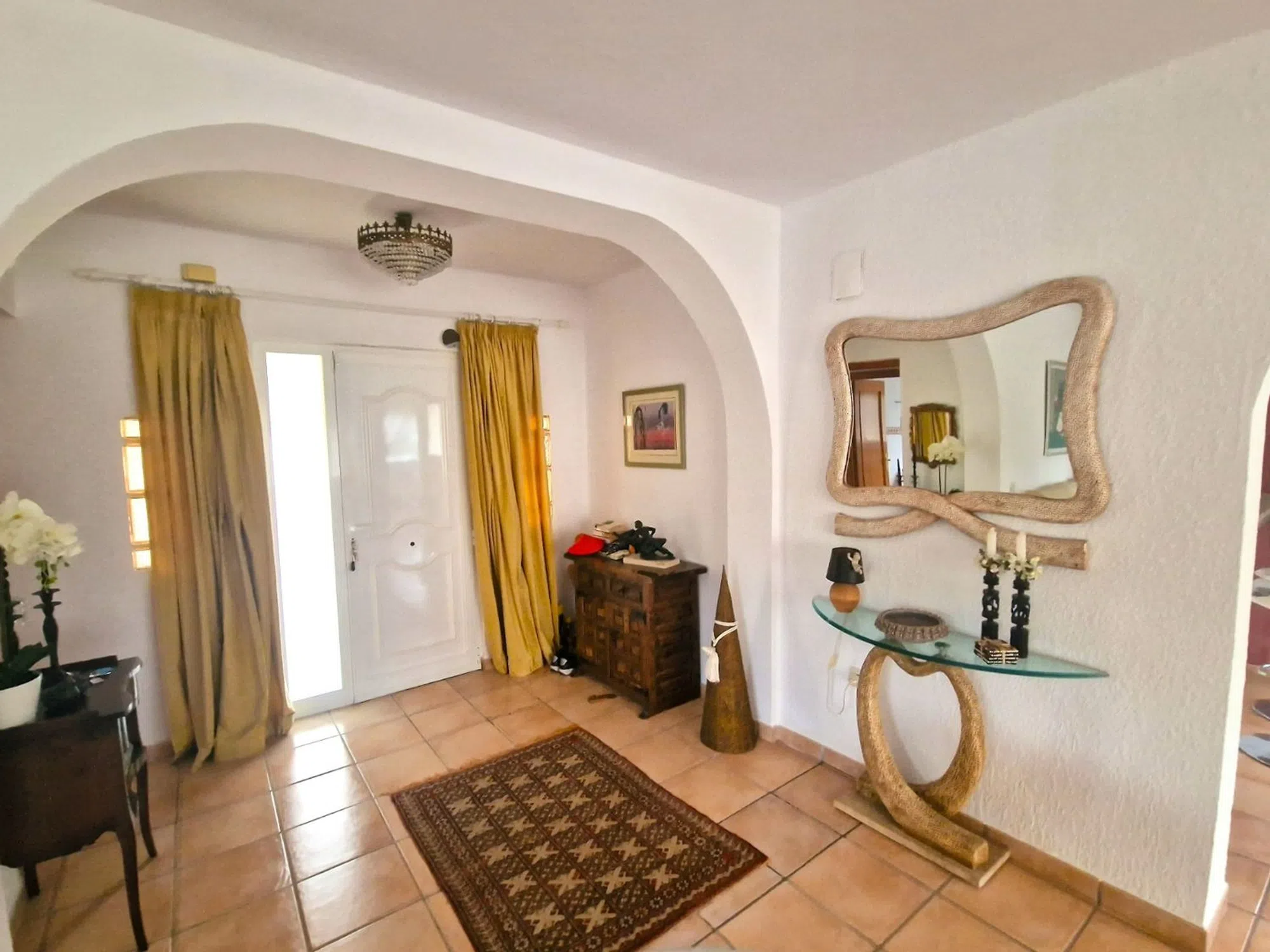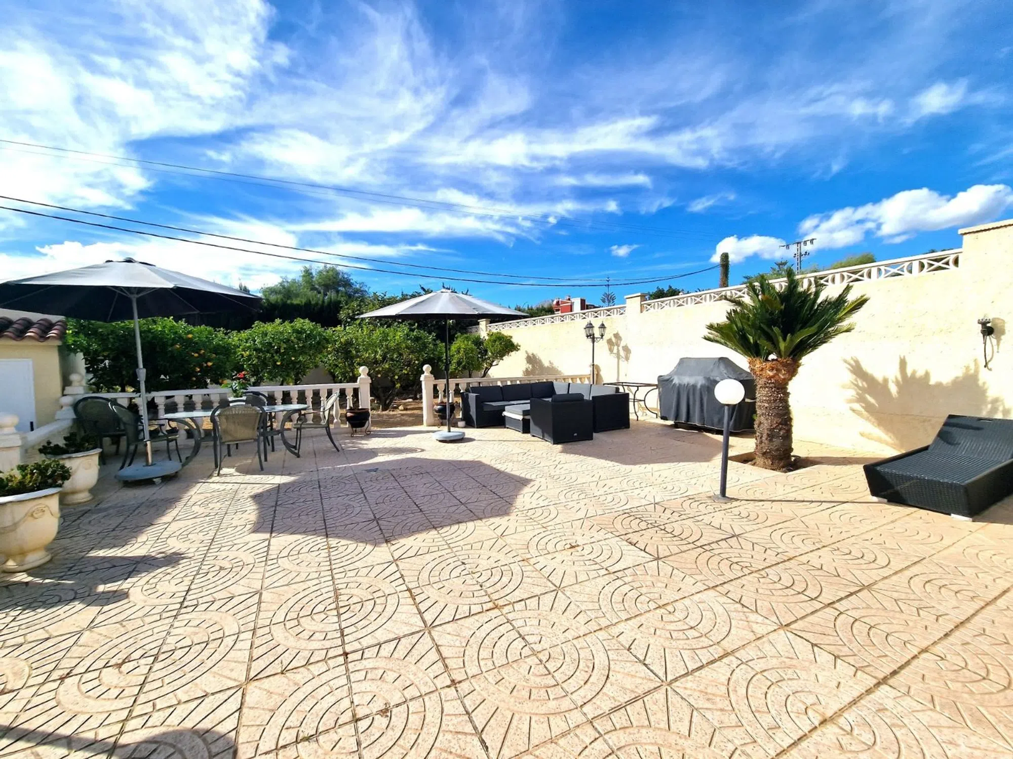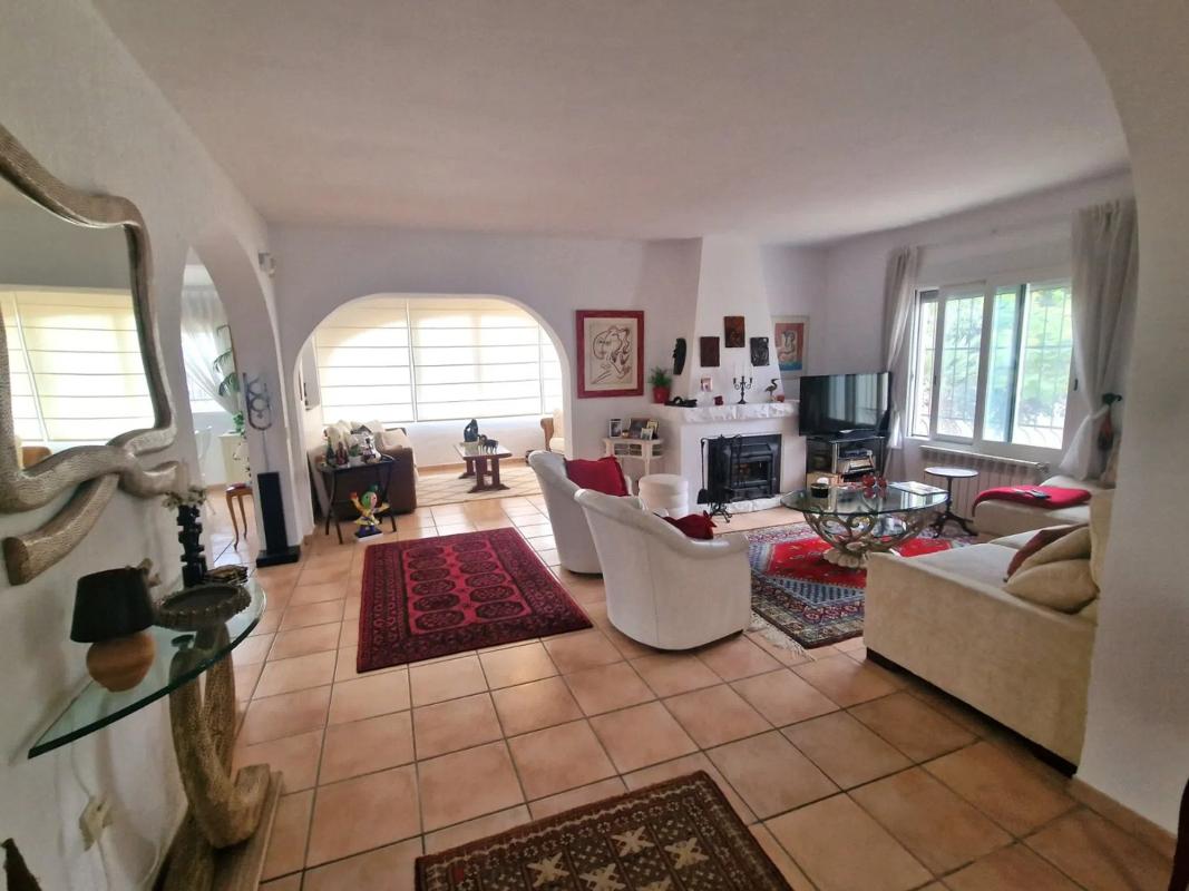 Una increíble villa en una sola planta, con apartamento de invitados, entre Alfaz y Albir. Una villa muy bien cuidada, toda en una sola planta con un apartamento de invitados, a solo unos minutos de la playa de Albir. La villa tiene 2 dormitorios y 2 baños, ambos con bañeras y duchas. El dormitorio principal tiene baño en suite. Ambos dormitorios tienen armarios empotrados con mucho espacio para su ropa. La Villa tiene una amplia cocina con mucho espacio de almacenamiento y una solución de barra en el comedor y la sala de estar. Este comedor es abierto y encantador, seguido de una acogedora sala de estar con chimenea y una segunda sala de estar con mucha luz natural. Fuera de la puerta principal hay un patio acogedor y acogedor. Puede sentarse aquí y relajarse con su café, o desde aquí puede acceder fácilmente a la terraza de la azotea de 36 m2 con sol desde la mañana hasta la noche. Desde el patio también tiene acceso directo al apartamento de invitados. El apartamento de invitados tiene una amplia y elegante sala de estar abierta y área de cocina. También tiene un dormitorio independiente con armario empotrado y un baño privado con ducha. Además, encontrará una amplia zona privada para actividades de verano con barbacoa, zona de estar, lugar para tumbonas y una gran piscina. La zona tiene sol desde temprano por la mañana hasta tarde por la noche. Tiene acceso a estacionamiento en una cochera y varios lugares para otros autos en la propiedad. También encontrará un amplio jardín con muchos árboles frutales y mucho espacio de almacenamiento. Esta es una propiedad única en una sola planta. La villa está bien cuidada por dentro y por fuera. Y se ha actualizado en los últimos años con nuevas ventanas de doble acristalamiento. Hay aire acondicionado con frío y calor, chimenea en la sala de estar y radiadores de gas en el invierno. Si está buscando una villa con todo en una sola planta con un encantador apartamento de invitados, cerca de todo, pero en una zona tranquila y pacífica, la ha encontrado. Esta es una propiedad que debe ver.