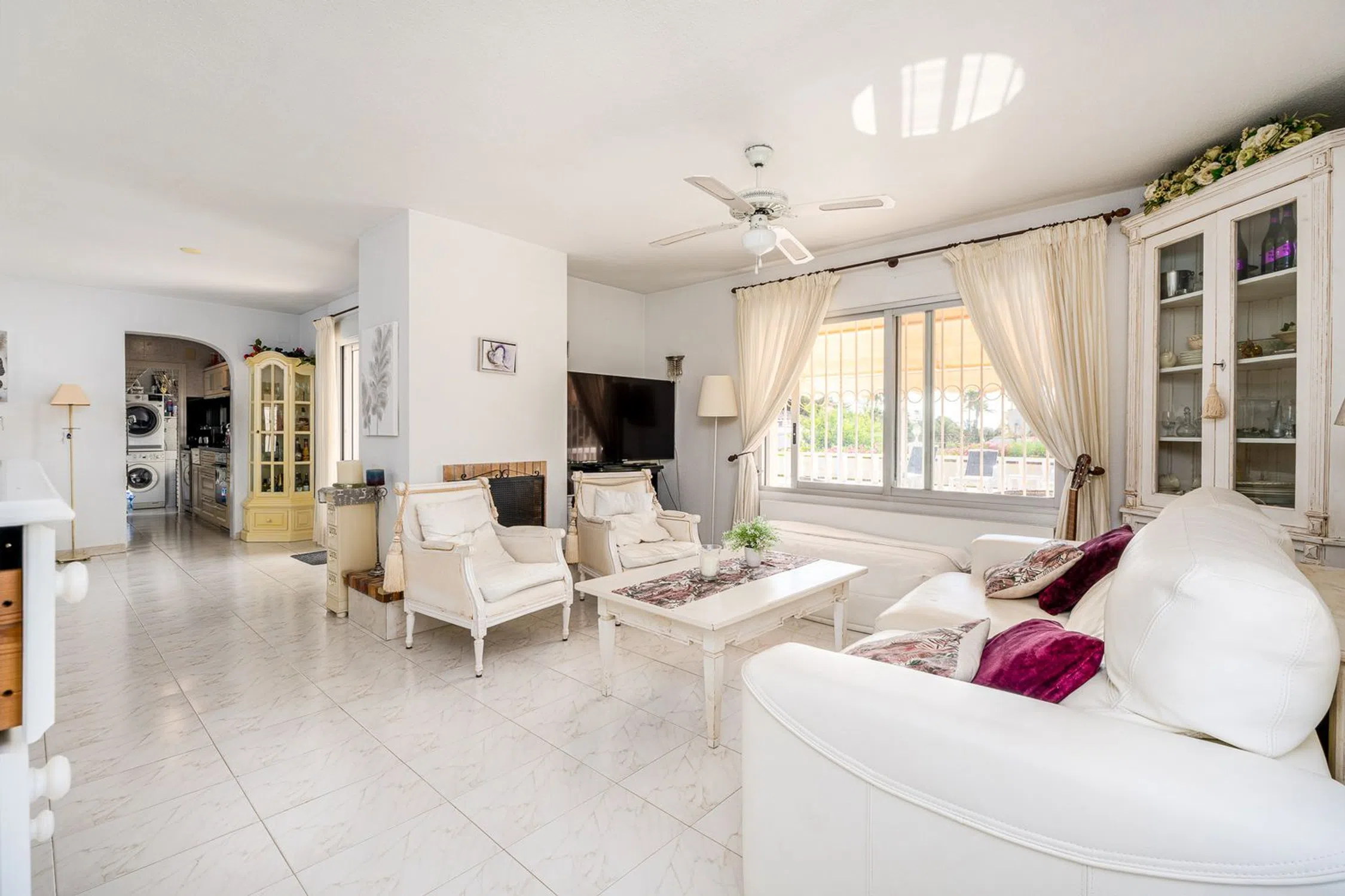 Casa Familiar Brillante y Espaciosa Bienvenido a esta maravillosa villa que ofrece todo lo necesario para una vida armónica y cómoda. Construida originalmente en 1988 y completamente renovada en 2010, la propiedad combina encanto atemporal con comodidad moderna. Situada en una amplia parcela de 945 m² orientada al sur en un tranquilo vecindario familiar, esta villa de una sola planta proporciona privacidad, espacio y una atmósfera cálida y acogedora. Con una superficie construida de 176 m², la casa cuenta con cuatro habitaciones bien distribuidas y dos baños. La distribución práctica incluye un recibidor acogedor que también funciona como comedor, una sala de estar confortable, una cocina totalmente cerrada y un cuarto de lavandería separado que garantiza una organización diaria sin esfuerzo. El confort está garantizado durante todo el año gracias a la calefacción centralizada y un sistema moderno de refrigeración y calefacción, con nuevas unidades de aire acondicionado instaladas en 2020. En el exterior, la villa sigue impresionando. El jardín privado, completamente renovado en 2014, está bellamente mantenido y ofrece un espacio perfecto para relajarse o entretener. La fantástica piscina incluye un moderno sistema de calefacción de agua con una nueva bomba de calor y cubierta instaladas en 2018. Hay un área de juegos con un arenero y un columpio, lo que la hace ideal para familias con niños. Un gran garaje con un nuevo abridor de puerta (instalado en 2020) proporciona amplio almacenamiento y estacionamiento seguro, con espacio para 3 a 4 coches. La propiedad beneficia de vistas parciales al mar y a la montaña y se vende parcialmente amueblada, lo que la hace lista para disfrutar de inmediato. Ubicación: Playa: A solo 15 minutos en coche de la playa más cercana, perfecta para disfrutar del sol y el mar. Aeropuerto de Alicante: Aproximadamente a 45 minutos en coche, lo que asegura un acceso conveniente a vuelos internacionales y nacionales. Valencia: A poco menos de 1.5 horas en coche, proporcionando acceso a atracciones culturales y urbanas en una de las ciudades más dinámicas de España.