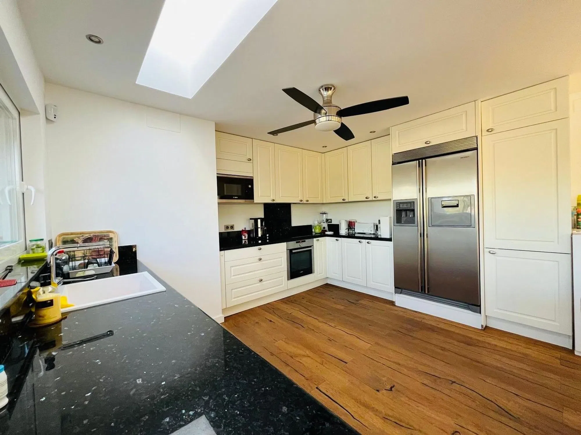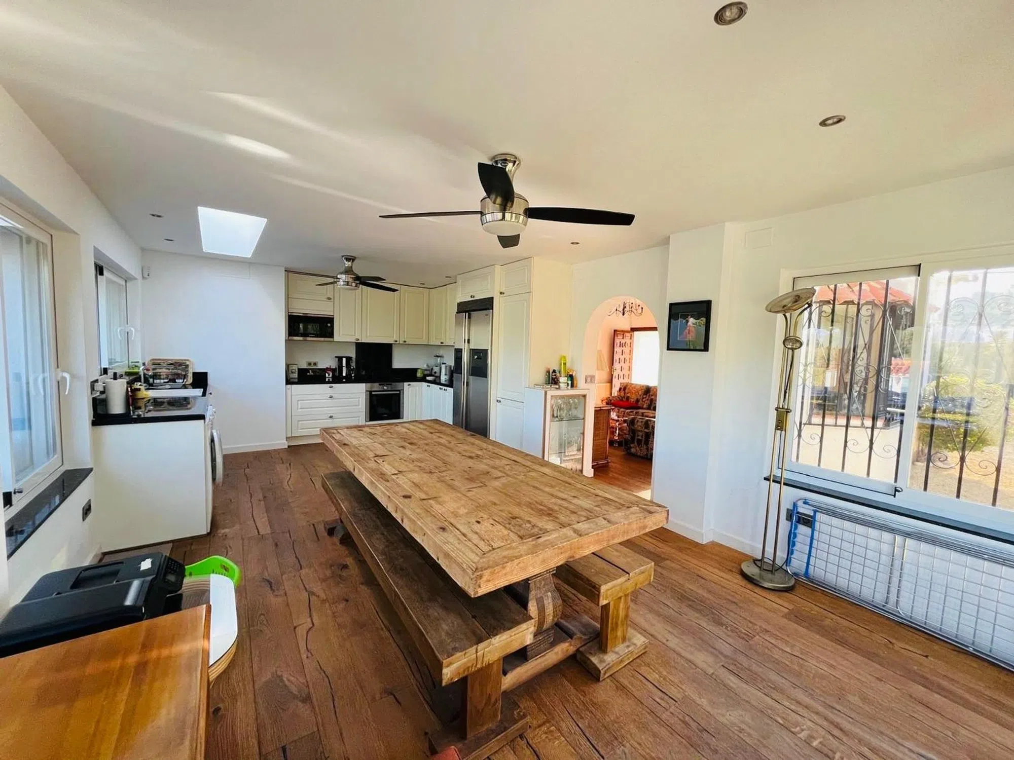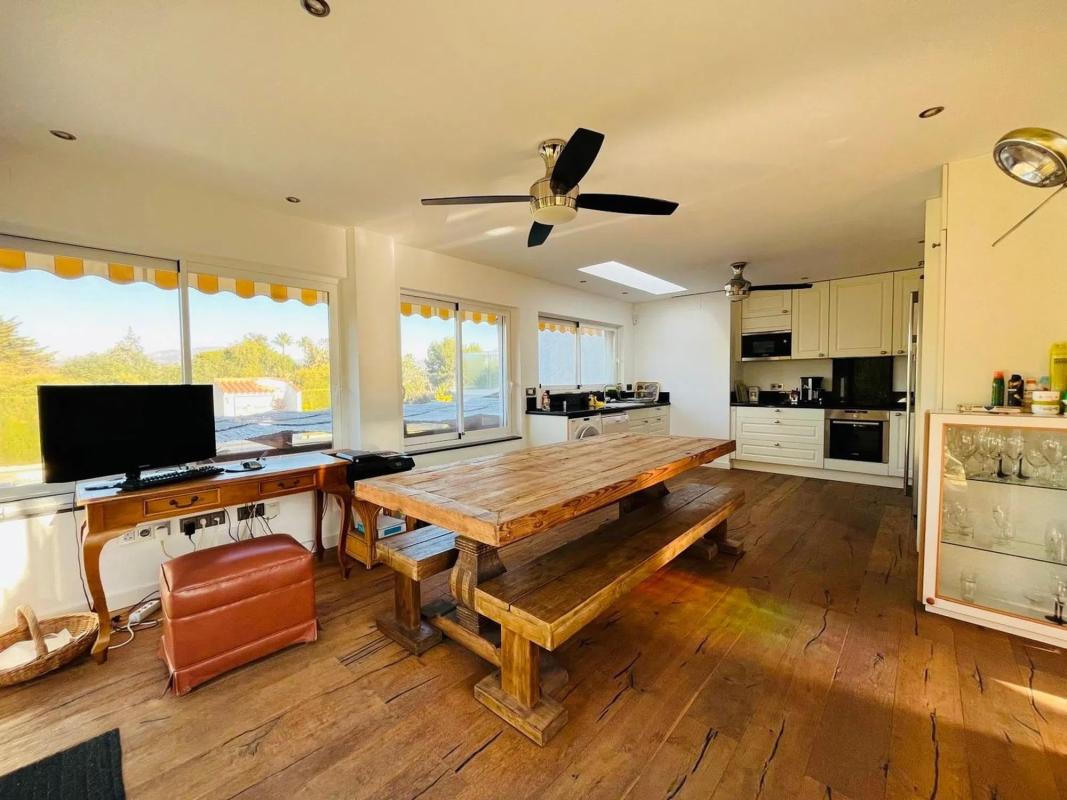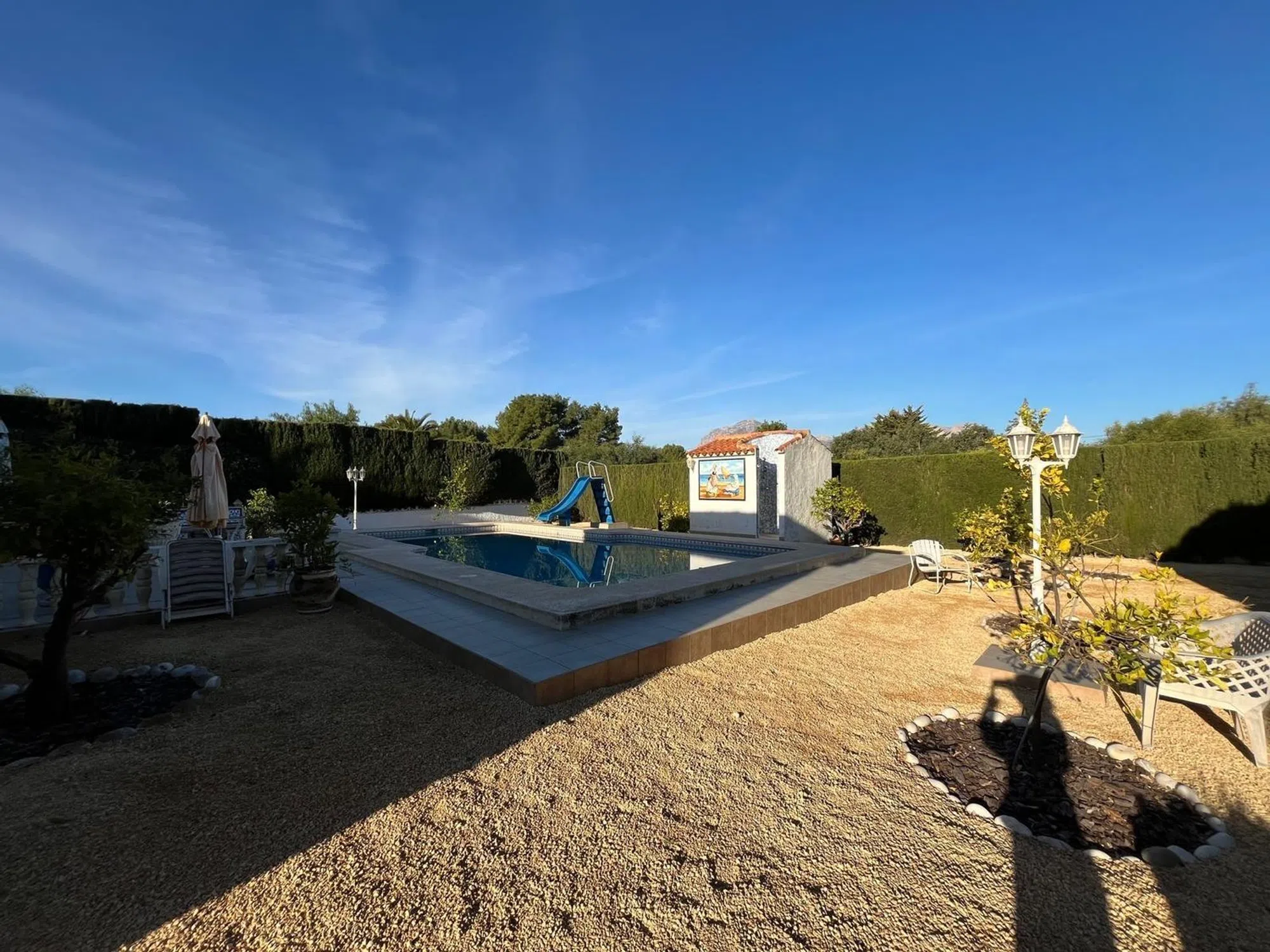 Elegante villa de 200m2 en una sola planta con una gran parcela de 1140m2 con hermosas palmeras en una zona muy tranquila a un paso del centro del Albir. Esta villa, lista para entrar a vivir, cuenta con una espaciosa piscina, ducha exterior, 3 dormitorios y 2 baños, terrazas cubiertas y descubiertas, garaje. aire acondicionado en todas las habitaciones, una moderna cocina también con acceso directo a la terraza cubierta y al jardín.