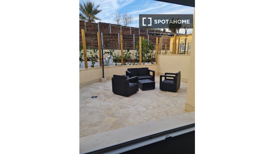 Möblierte 1-Zimmer-Wohnung zu vermieten in der Partida Torrellano Alto. Die Immobilie befindet sich im Erdgeschoss eines Gebäudes ohne Aufzug. Zur Immobilie gehören eine Terrasse und ein Fernseher.