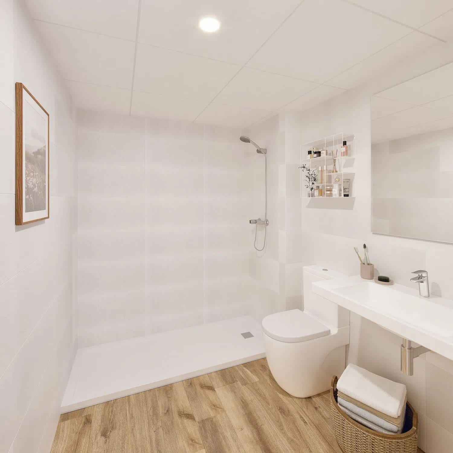 Die Architektur des Abelia Residencial ist zeitgemäß gestaltet und bietet zahlreiche nach außen gerichtete Bereiche, die es ermöglichen, das natürliche Licht optimal zu nutzen. Die meisten Wohnungen sind mit Querlüftungen ausgestattet, um ein angenehmes Wohnklima zu gewährleisten. Darüber hinaus haben Käufer die Möglichkeit, die Innenausstattung der Wohnungen zu personalisieren, darunter die Möblierung der Küche sowie die Wahl von Arbeitsplatten, Böden und Wandverkleidungen in den Badezimmern. Alle Wohnungen sind mit Einbauschränken, weiß lackierten Türen sowie voll ausgestatteten Küchen mit Cerankochfeld, Dunstabzugshaube, eingebauten Backöfen und Mikrowellen ausgestattet.