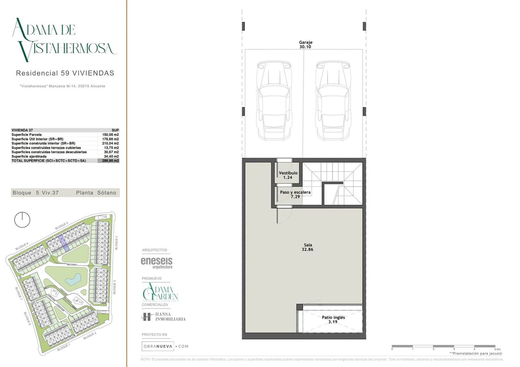 Un nuevo residencial llega a Vistahermosa Norte, la zona de mayor proyección en Alicante. En Adama de Vistahermosa encontrará el chalet adosado o pareado que se adapta a sus necesidades. Rodeado de todos los servicios, cerca tanto del centro de la ciudad como de las playas, las viviendas de Adama de Vistahermosa están diseñadas para proporcionales el confort, funcionalidad y espacio que necesita para la vida diaria, 4 dormitorios, 3 baños, semisótano con patio inglés, grandes terrazas y jardines privados, estancias amplias, grandes salones de más de 40 m², dormitorio principal de más de 22 m², primeras calidades en todos sus materiales e instalaciones. Además Adama cuenta con una mágnifica zona comunitaria con piscina desbordante, amplias zonas verdes, zona calistenia, parque infantil, zona gourmet y area cooworking, todo lo necesario para disfrutar dentro y fuera de su vivienda todo el año. ¡Venga a informase, la vida que soñaba en posible en Adama de Vistahermosa.