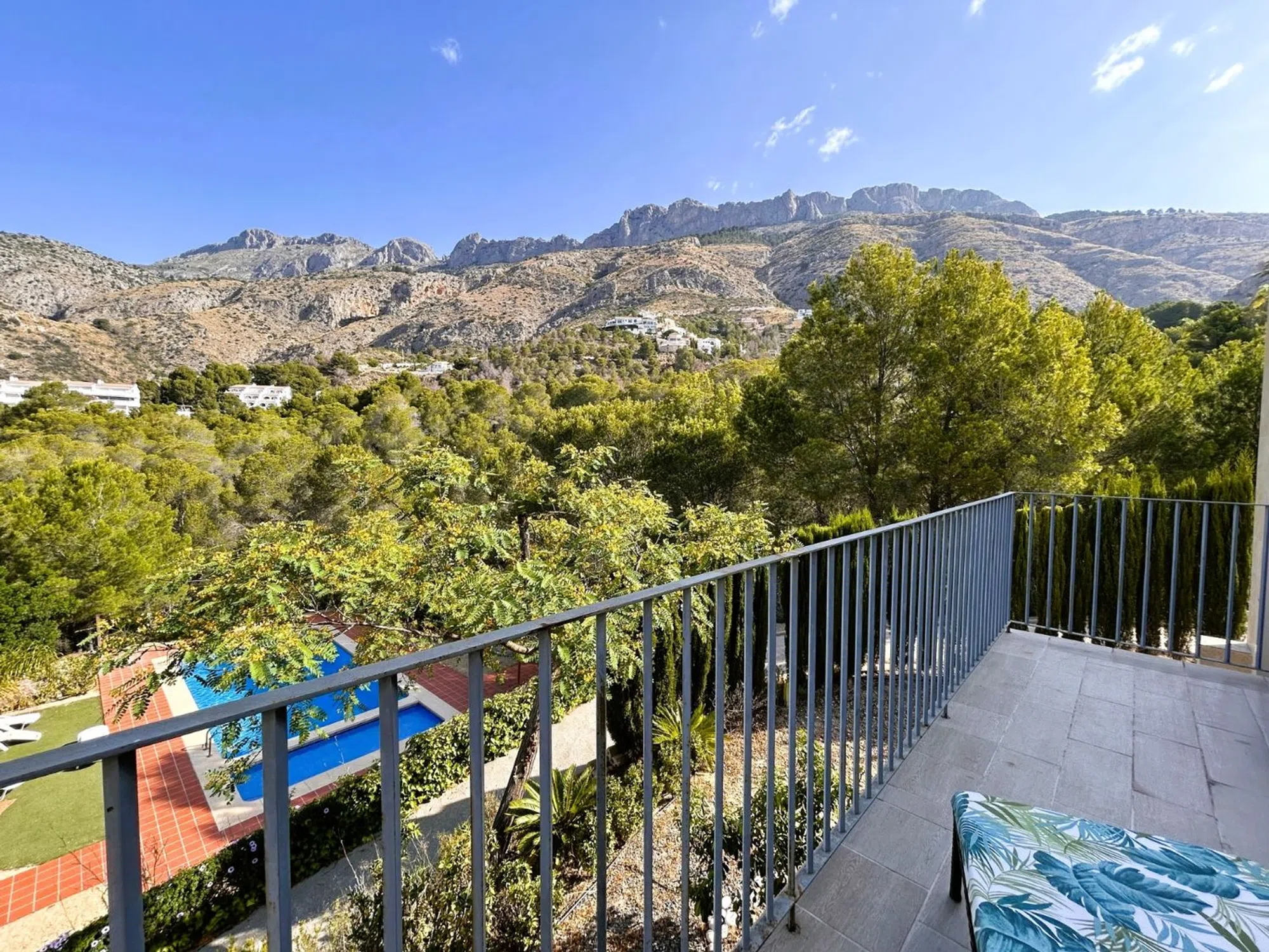 Presetamos en exclusiva este encantador chalet independiente ubicado en un moderno y cuidado complejo residencial con piscina comunitaria en Altea la Vella. Situada a pocos minutos del prestigioso Club de Golf Don Cayo y del pintoresco núcleo urbano de Altea la Vella, esta villa de estilo contemporáneo destaca por su funcionalidad, diseño elegante y altos estándares de confort y calidad. La vivienda se distribuye en dos plantas. En la planta principal encontrará dos amplias terrazas — una orientada al sol y otra a la sombra— ideales para disfrutar del clima mediterráneo durante todo el día. También dispone de un luminoso salón-comedor, cocina americana totalmente equipada, y un aseo de cortesía. Desde la terraza principal podrá deleitarse con unas impresionantes vistas a la Sierra de Bernia. En la planta inferior, a la que se accede por una elegante escalera con suelo de mármol, se ubican dos dormitorios dobles, un baño completo con ducha, y la suite principal con baño privado y salida directa al jardín. Desde el recibidor se accede además a una tercera terraza de gran tamaño, con absoluta privacidad y hermosas vistas a la montaña. En esta zona también se encuentra un lavadero cerrado con zona de almacenaje. La propiedad incluye plaza de aparcamiento privada y la piscina comunitaria se sitúa a solo unos pasos. Altea la Vella ofrece todos los servicios necesarios: supermercados, restaurantes, centro médico y el encanto de un auténtico pueblo mediterráneo con tradiciones, fiestas populares y un ambiente acogedor. La autopista AP-7 se encuentra a tan solo 5 minutos, lo que permite llegar al aeropuerto de Alicante en apenas 45 minutos. No dude en ponerse en contacto con nosotros. Estaremos encantados de organizar una visita personalizada para usted.