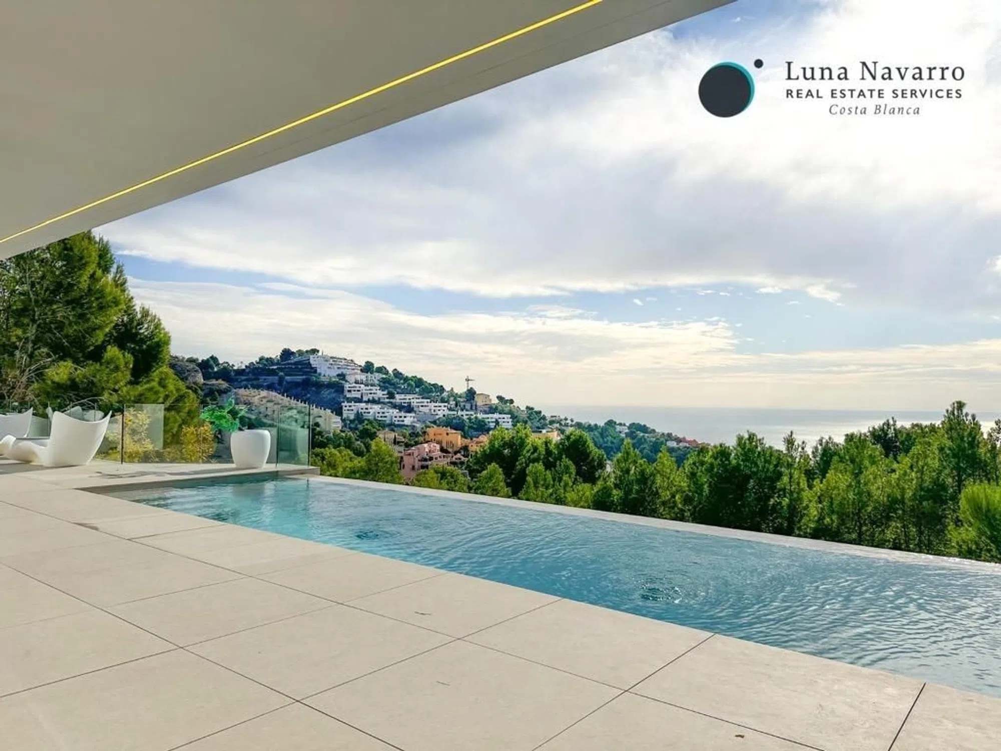 Dicen que la felicidad se encuentra en el camino y no en el destino, pero como toda regla, siempre hay excepción; y esta villa de lujo ubicada en la Sierra de Altea es una de ellas. Como con ninguna otra, aquí puedes disfrutar del camino con sus paisaje y naturaleza hasta llegar al destino, un hogar donde encontrar la bonanza en mayúsculas. Porque felicidad es compartir con los tuyos en esta casa minimalista de nueva construcción con unas impresionantes vistas al mar, equipada con las mejores calidades y un diseño perfecto. Te espera una amplia terraza de 145 metros, la luz que entra por las grandes cristaleras y la brisa marina que sube por la montaña. Felicidad es privilegio y qué mayor privilegio que poder preparar las mejores recetas en su cocina abierta al luminoso comedor con una isla central; poder desayunar tomando el sol en el porche; o ver cómo la casa se tiñe de rosa cuando se pone el sol mientras disfrutas con los amigos en la zona de juegos. La felicidad es poder compartir sin perder la privacidad y qué mejor que disponer de cuatro dormitorios, donde el principal tiene la cama mirando al mar, un acceso a una terraza privada, baño en suite y vestidor. Felicidad es tenerlo todo al alcance de la mano, con una propiedad equipada con ascensor, sistema de seguridad, suelo radiante, aire acondicionado, iluminación técnica y zonas ajardinadas. La felicidad, en definitiva, está en el bienestar, y qué mayor bienestar que tener tres espacios abiertos inundados por la luz del Mediterráneo, una amplia terraza y una piscina con un lateral en sinfín para no perder el mar de vista ni un sólo instante.