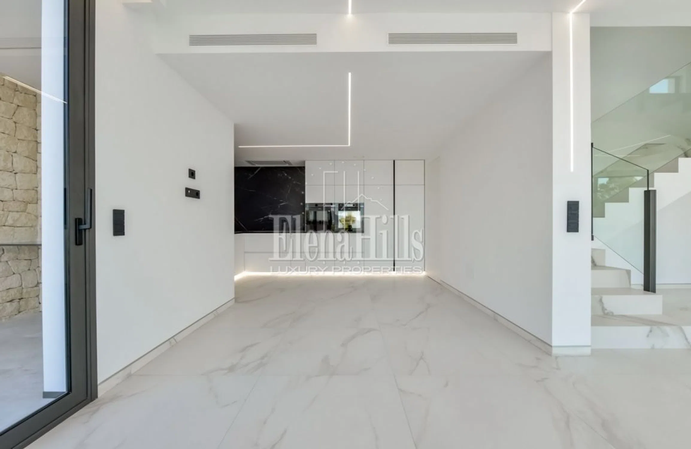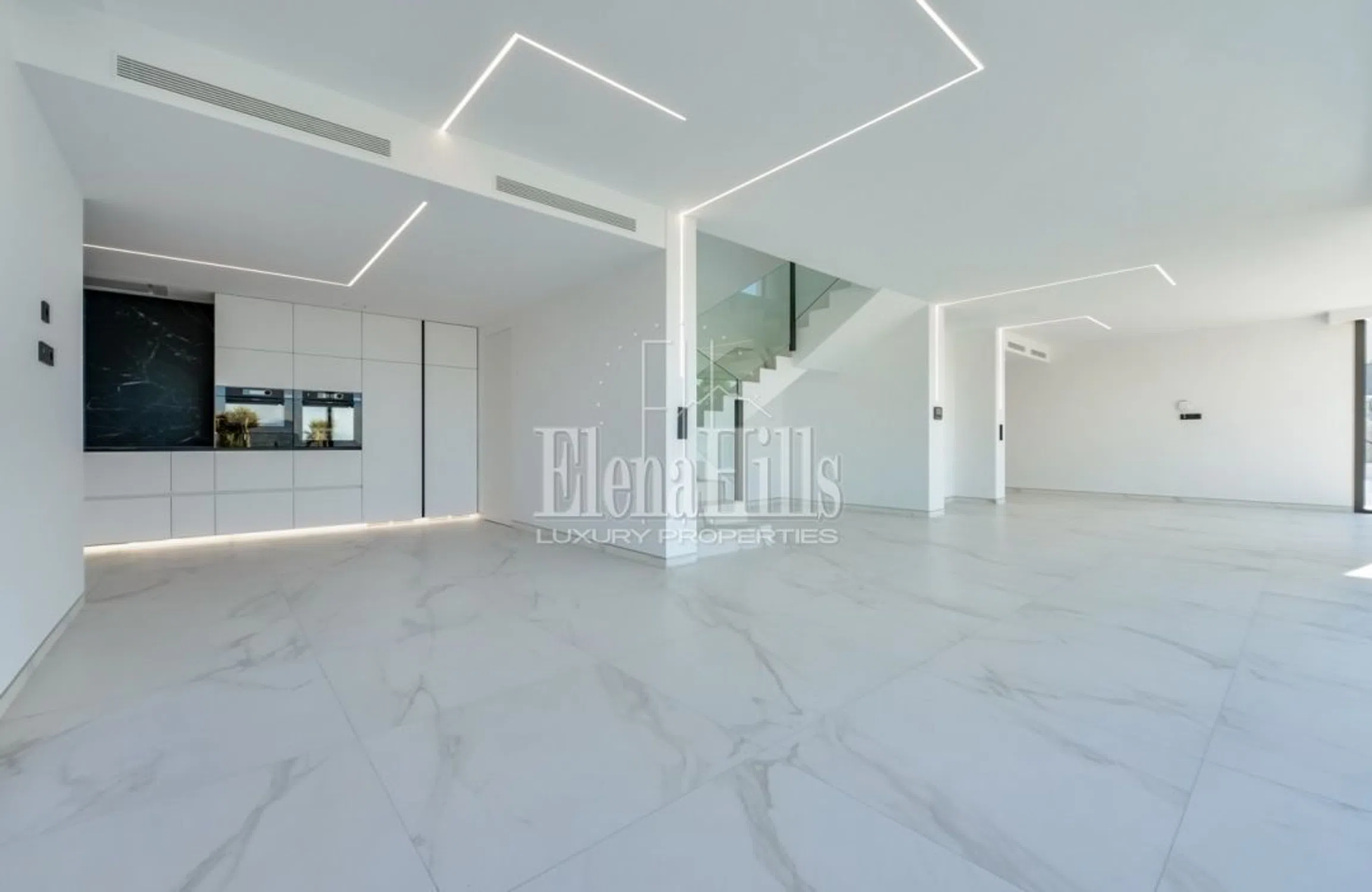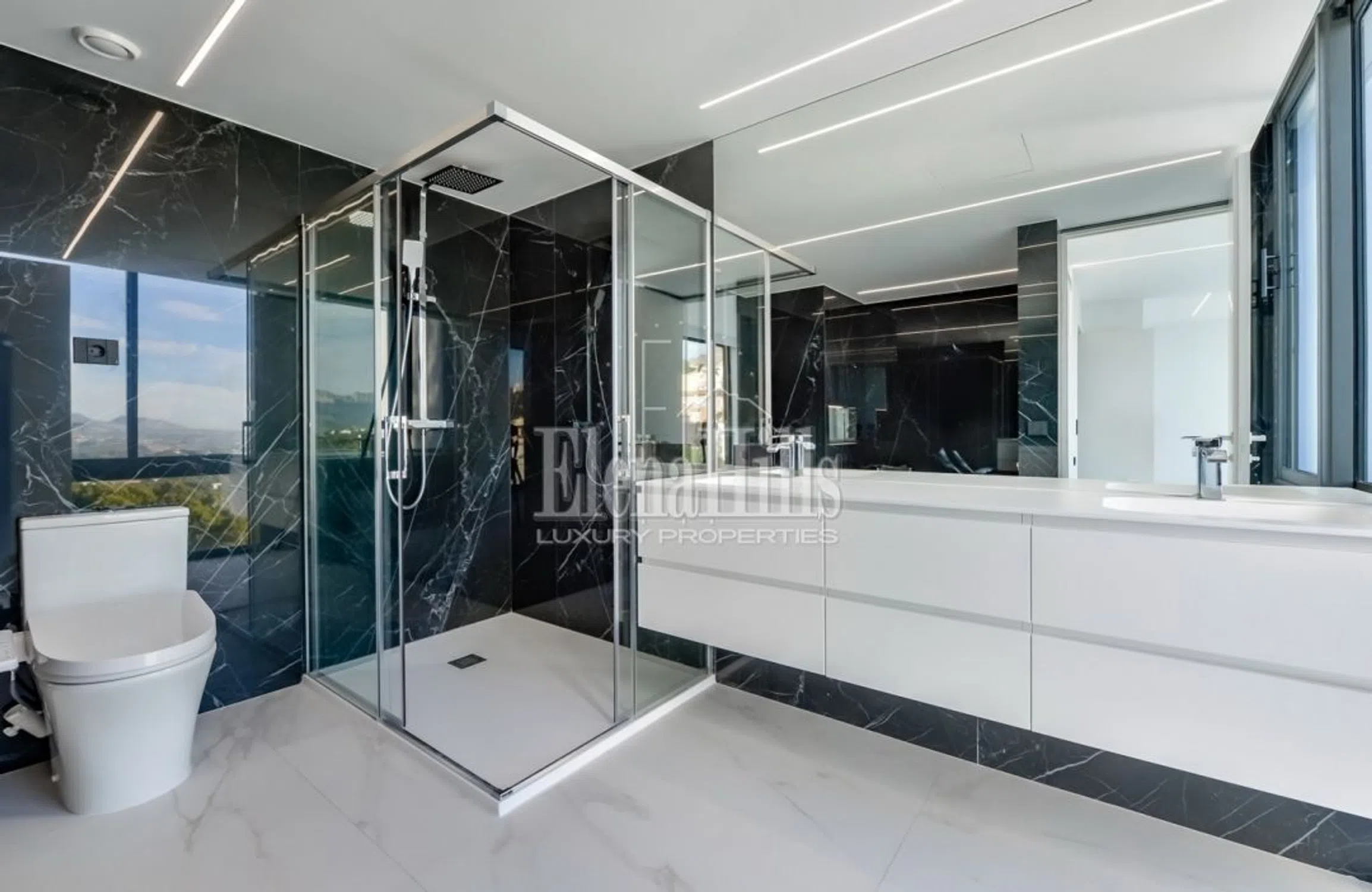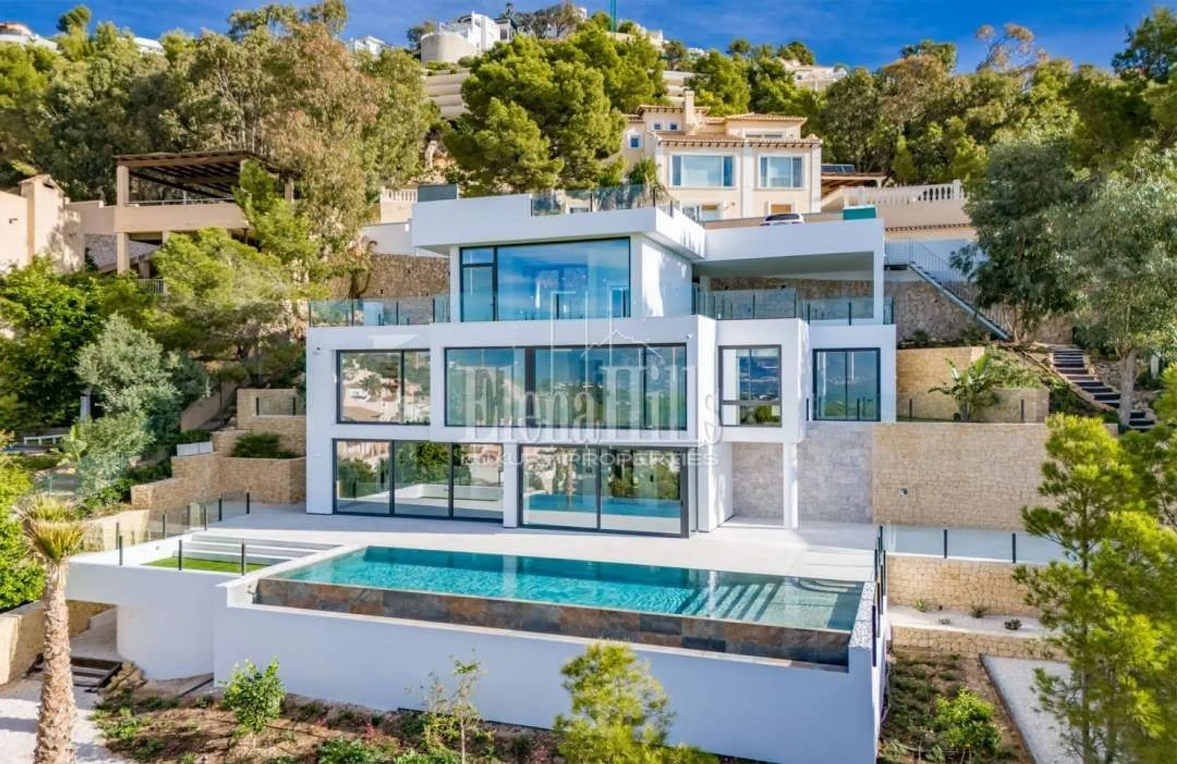 Nueva villa con vistas panorámicas al mar y a las montañas, ubicada en Altea Hills, la urbanización más segura y prestigiosa, famosa por sus impresionantes vistas y villas, así como por el silencio y la privacidad garantizados. La villa tiene 3 plantas, la superficie total de la casa es de 560 m2 y la superficie de la parcela es de 817 m2. En la entrada a la parcela hay a un estacionamiento abierto para 2 coches, así como una zona exterior con impresionantes vistas al mar y a la montaña. Más abajo por las escaleras, se llega al nivel superior de la villa hasta la entrada principal de la casa con ascensor. A la izquierda de la entrada principal hay un guardarropa. Bajando un piso, te encuentras en un piso con 4 dormitorios con baños privados, cada dormitorio tiene un lugar para un guardarropa, el dormitorio principal tiene un lugar para un guardarropa separado o un dormitorio para niños, y en el baño principal, además a una ducha, también hay un jacuzzi. Bajando un piso más, te encuentras en una amplia sala de estar, donde también hay una cocina abierta y un comedor. Junto a la cocina hay un trastero que puede acomodar una lavadora, un congelador y otros electrodomésticos. También en esta planta hay un dormitorio de invitados y un aseo de invitados con ducha. Desde el salón se accede a una amplia terraza con impresionantes vistas al mar, piscina infinity y zona de barbacoa. Hay una ducha cerca de la piscina. La casa está equipada con aire acondicionado, suelo radiante y sistema “casa inteligente”.