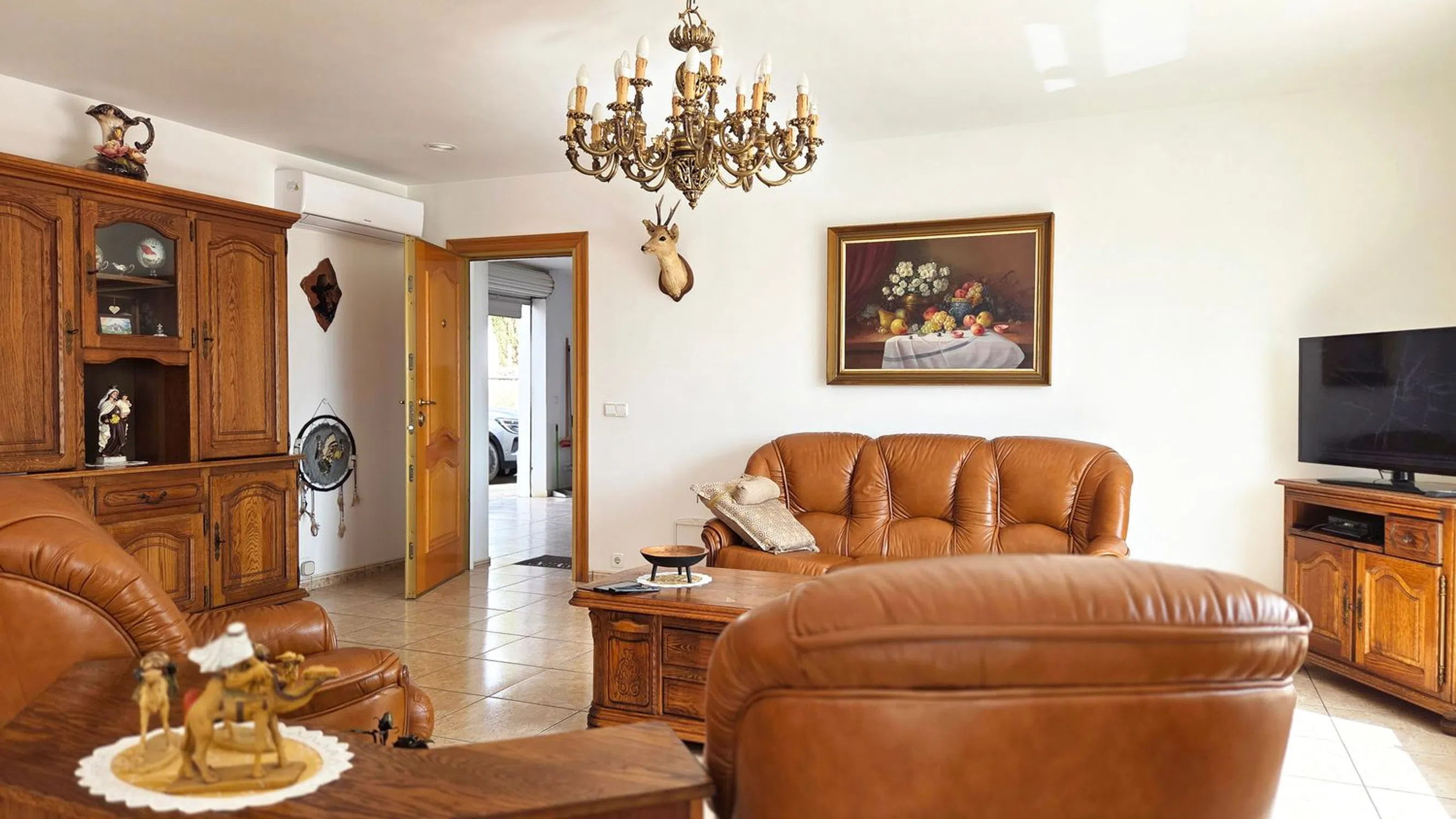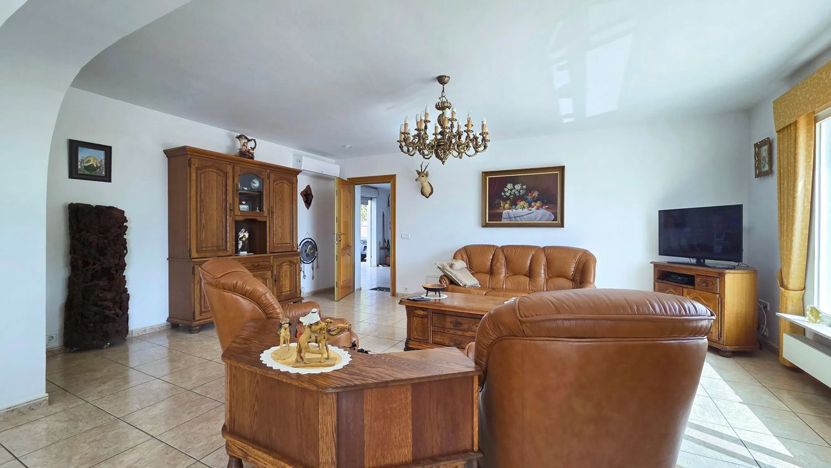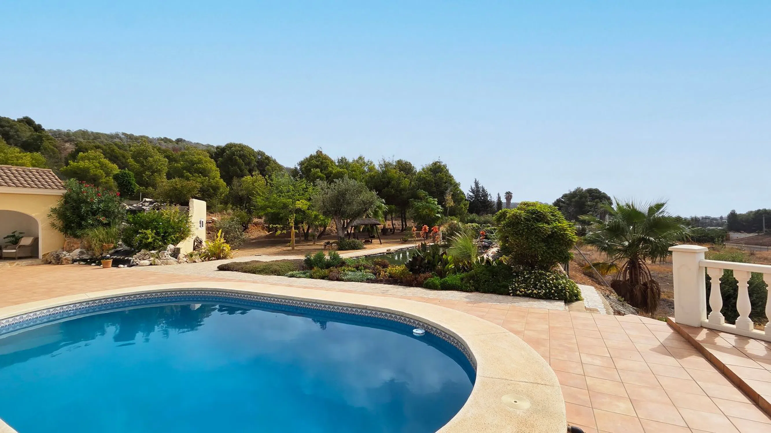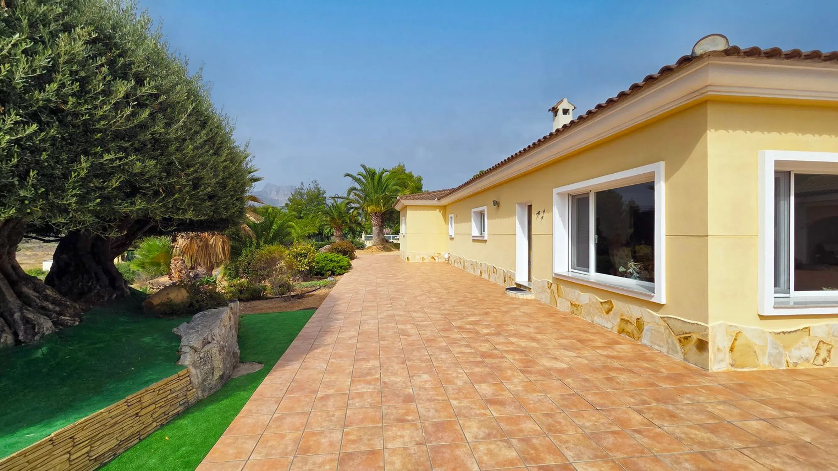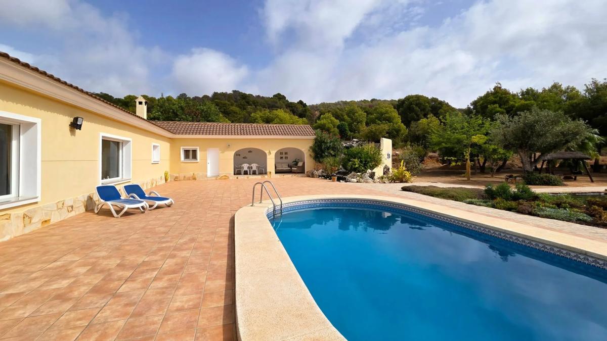 Esta elegante villa de estilo finca, con una superficie construida de 374 m², se encuentra en una ubicación única y tranquila, en una amplia parcela de 18.900 m². Al entrar en la propiedad, un acogedor recibidor conduce al salón de 60 m², que da directamente a la espaciosa terraza con una piscina de 8 x 4 m, un estanque de peces y una cascada: un ambiente relajante y exclusivo. Desde la terraza, se accede a la espaciosa cocina y a los tres luminosos dormitorios, todos ubicados en la misma planta. El dormitorio principal cuenta con baño en suite y vestidor. Los otros dos dormitorios comparten un elegante baño con ducha y un aseo de invitados. La villa está equipada con calefacción central de gasóleo, aire acondicionado en el salón y el dormitorio principal, y un garaje doble. En la parcela adyacente se encuentra una encantadora casa de invitados con piscina privada. Con unas pocas reformas, este espacio puede transformarse en el alojamiento ideal para familias o amigos. Tanto la villa como la casa de invitados están completamente valladas, lo que garantiza la privacidad y la seguridad. La ubicación cautiva por su tranquilidad y belleza natural, rodeada de montañas, extensas llanuras y vistas al mar. A pesar de su idílico entorno, la propiedad se encuentra a solo unos minutos en coche del centro de Altea, ofreciendo una combinación perfecta de paz y comodidad. Para más información o para concertar una visita, contáctenos.