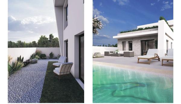 ¡Bienvenido a tu nuevo hogar! Esta exclusiva vivienda de obra nueva, situada en una tranquila zona residencial, es la opción perfecta para quienes buscan comodidad y estilo. Con una parcela de 400 m², esta moderna casa unifamiliar de dos plantas ofrece espacios amplios, funcionales y llenos de luz natural. En la planta baja, el amplio salón comedor se integra perfectamente con la cocina abierta, totalmente equipada con electrodomésticos de alta calidad. La vivienda cuenta con tres acogedoras habitaciones, todas con armarios empotrados, y dos baños amueblados que garantizan la comodidad de toda la familia. Disfruta de momentos al aire libre en el amplio porche, ideal para relajarse o compartir con amigos y familiares. Además, el jardín privado y la piscina te brindan un espacio exterior pensado para el disfrute y la privacidad. Ubicada a solo cinco minutos a pie de servicios esenciales como cafeterías, farmacias y supermercados, esta casa también ofrece un fácil acceso a la autovía del Mediterráneo A7, conectándote rápidamente con Alicante y Murcia. Con acabados minimalistas y amplias vistas al jardín, esta vivienda es una verdadera joya que combina modernidad y confort. ¡No pierdas la oportunidad de vivir en este paraíso!