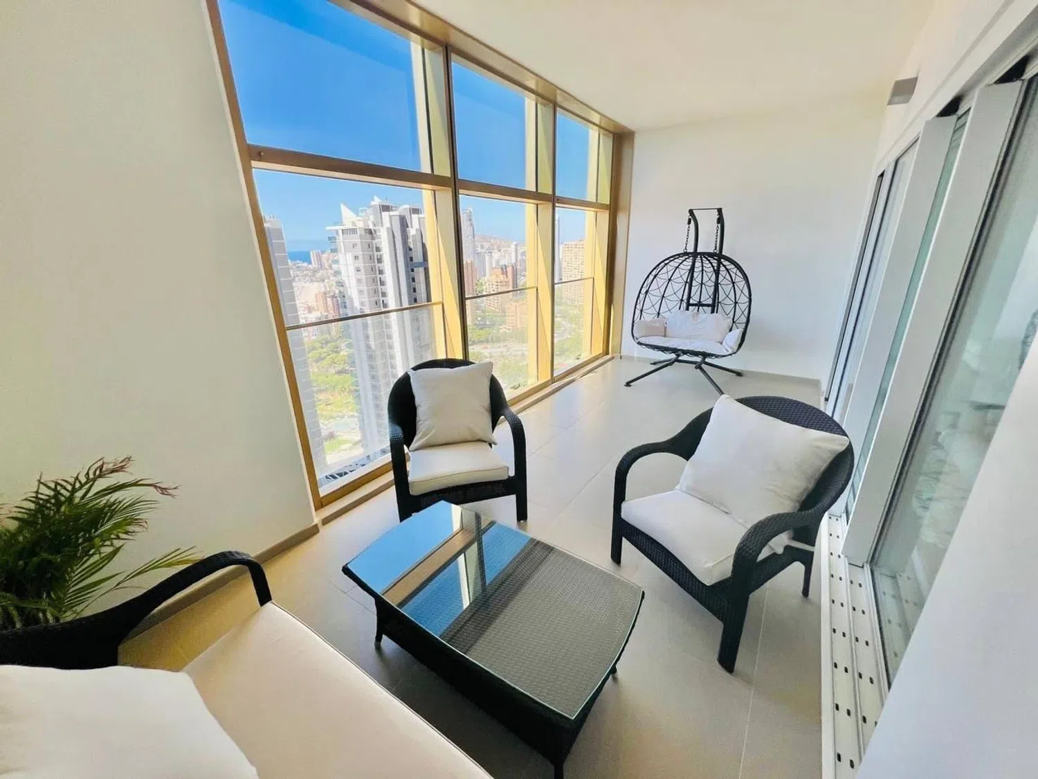 Ubicado en la planta 15 de uno de los complejos residenciales más exclusivos de España, este apartamento ofrece impresionantes vistas al mar y a la ciudad. Con una superficie de 96 m², la propiedad cuenta con dos dormitorios y dos baños, diseñados para brindar el máximo confort y privacidad. Dispone de una cocina independiente totalmente equipada, ideal para quienes disfrutan de la gastronomía en casa. El salón principal se abre a una amplia terraza, desde donde se puede disfrutar de una panorámica directa al mar. Además, incluye plaza de aparcamiento y trastero, proporcionando espacio adicional para almacenamiento. Además, el maravilloso apartamento está equipado con un sistema de aire acondicionado centralizado y cuenta con licencia turística, lo que lo convierte en una excelente opción tanto para uso residencial como para inversión en alquiler vacacional. Clima: El clima en la Costa Blanca, a menudo considerado como el mejor de Europa, hace posible un estilo de vida muy sociable y saludable, al aire libre, marcado por completas instalaciones deportivas y de ocio, con ciudades turísticas, excitantes y cosmopolitas, que destacan por la prestación de servicios máxima categoría, algunos de ellos exclusivos, considerados de auténtico lujo. Todos ellos destinados a un cliente exigente, que busca calidad y cercanía La Costa Blanca cuenta con más de 300 días de sol al año. Un paraíso con excelentes conexiones a toda Europa. El Aeropuerto de Alicante-Elche cuenta con unas modernas y amplias instalaciones y con un fácil y cómodo acceso desde cualquier punto de la provincia. Entorno: La Costa Blanca sigue atrayendo a personas de toda Europa, y de otros lugares del mundo, porque ofrece una calidad de vida única en un hermoso entorno a orillas del mar Mediterráneo, rodeado de montañas y de una exuberante vegetación. Además de los campos de golf y los puertos deportivos que podrás disfrutar por toda la costa, la zona también ofrece la posibilidad de esquiar en la cercana Sierra Nevada, Javalambre o Valdelinares, unos paraísos para amantes de los deportes de invierno, con hermosos paisajes naturales. La Costa Blanca ofrece un estilo de vida singularmente rico, donde las mejores playas y calas del Mediterráneo se combinan con un interior repleto de montañas y pueblos que esconden cultura y monumentos históricos únicos en el mundo. Tenemos un regalo para ti: En nuestra inmobiliaria te ayudamos a convertir tu nueva propiedad en la casa de tus sueños, regalándote una visita técnica de la vivienda, donde nuestro equipo técnico te aconsejará sobre las posibilidades de mejora de la vivienda. ¡Totalmente gratis! Creemos que tu confianza merece un trato excepcional. ¡IMPORTANTE! Nuestra agencia pertenece a un grupo de empresas consolidadas y especializadas todas ellas en el sector del hogar; arquitectura, interiorismo, mobiliario, asesoramiento en la compra venta de bienes raíces etc... Estos recursos propios nos permiten ofrecer unos servicios únicos y exclusivos a nuestros clientes.
