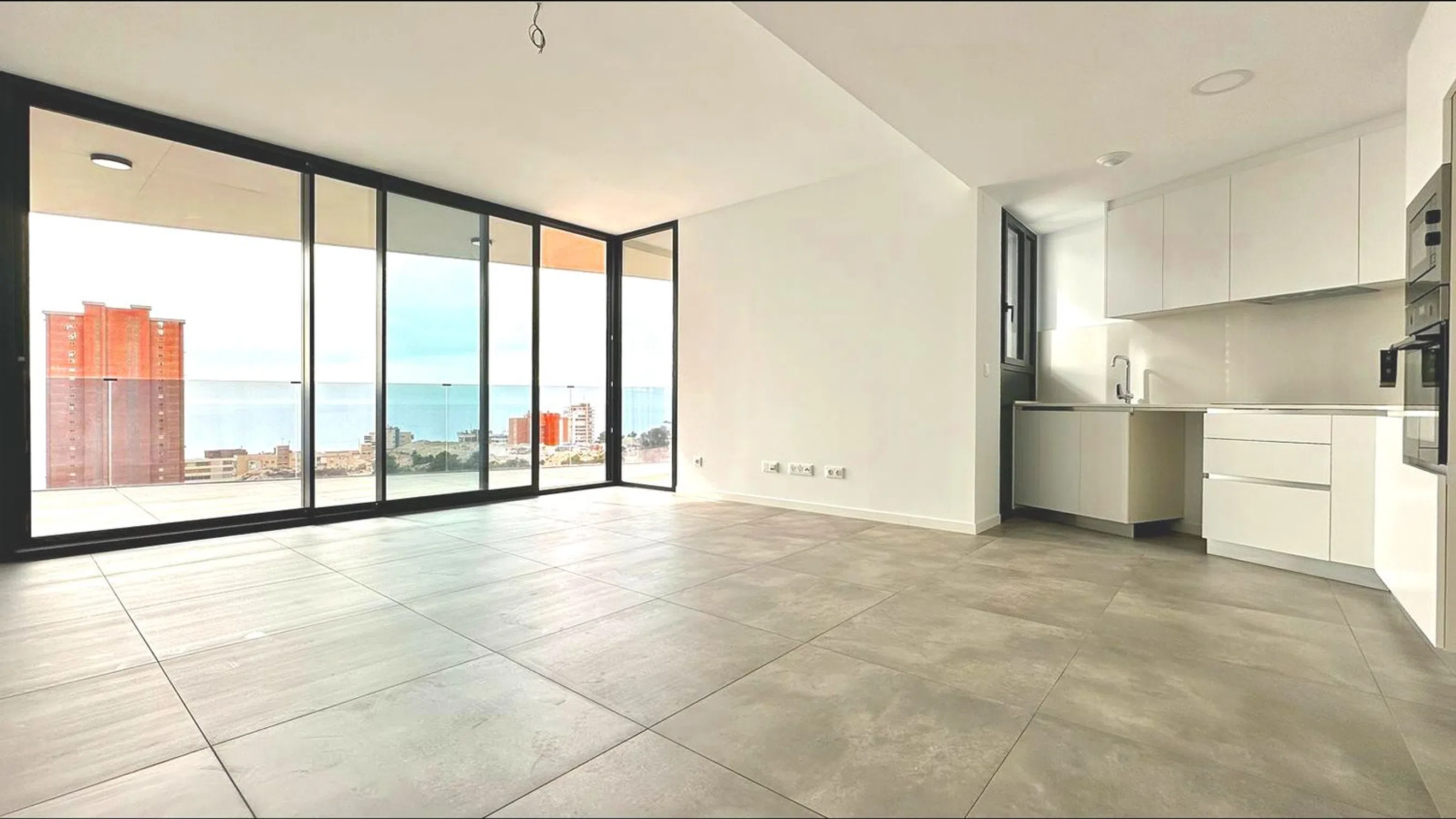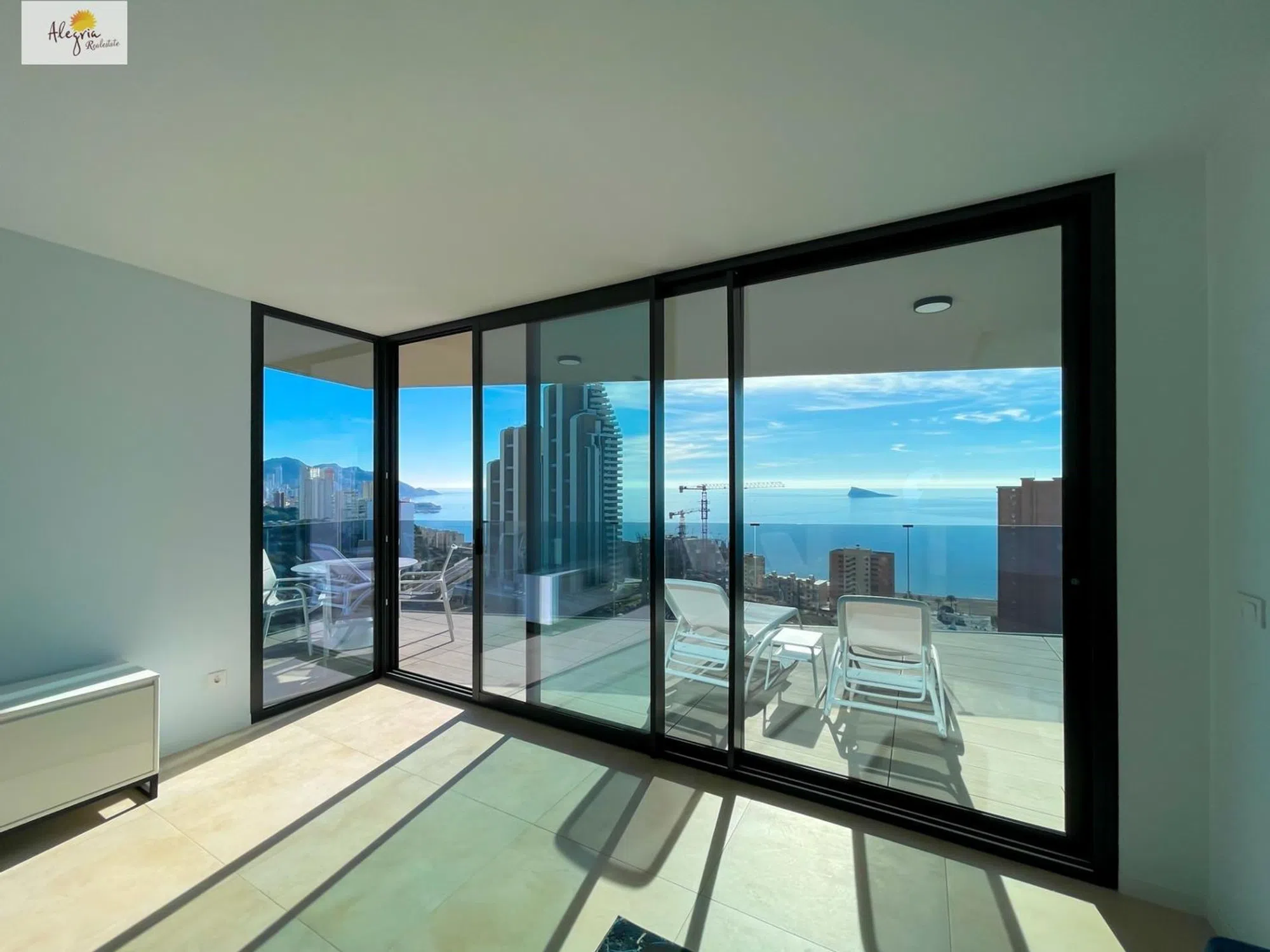 APARTAMENTO DE DISEÑO A ESTRENAR CON VISTAS AL MAR EN LA PLAYA DE PONIENTE, BENIDORM Descubre una oportunidad única de adquirir un hermoso piso con vistas al mar en la Playa de Poniente, la zona más exclusiva de Benidorm. Este apartamento de 2 dormitorios ofrece un diseño moderno y espacioso, con todos los detalles pensados para brindar confort y estilo. Incluye plaza de garaje y trastero, proporcionando comodidad adicional a sus residentes. La urbanización cuenta con instalaciones y servicios propios de un complejo residencial de lujo, convirtiéndola en una excelente oportunidad de inversión. Con más de 4000m2 de zonas comunes, esta exclusiva comunidad ofrece una amplia gama de amenidades, incluyendo: - Piscina desbordante con zona para practicar la natación de 3 calles y zona de esparcimiento con jacuzzi. - Piscina infantil. - Aseos y duchas. - Zona infantil de juegos homologados con pavimento de caucho de seguridad. - Extensos jardines y zonas de descanso con pérgolas y bancos. El apartamento destacan por su estilo moderno en tonos neutros y un diseño diáfano, con amplios ventanales y cristaleras de suelo a techo que permiten la entrada de abundante luz natural, creando un ambiente luminoso y acogedor. Entre las características adicionales, se incluyen suelos de cerámica tipo parquet, armarios empotrados y puertas lacadas en blanco. Además, se ha instalado iluminación led y sistema de climatización frío/calor mediante aerotermia para proporcionar el máximo confort a los residentes. Experiencia inmersiva: Imagina disfrutar de la experiencia de un televisor de 500 pulgadas con vistas privilegiadas al mar desde el salón de tu nuevo hogar. Este espectacular piso ofrece una experiencia visual ultrarrealista, donde podrás sentir la brisa del Mediterráneo y escuchar el canto de las gaviotas mientras te relajas en casa. En resumen, estos apartamentos ofrecen una combinación perfecta de lujo, comodidad y vistas impresionantes. ¡Contáctanos hoy mismo para visitar esta propiedad y conocer más detalles sobre estas exclusivas viviendas! Alegria real estate Construimos tus sueños!