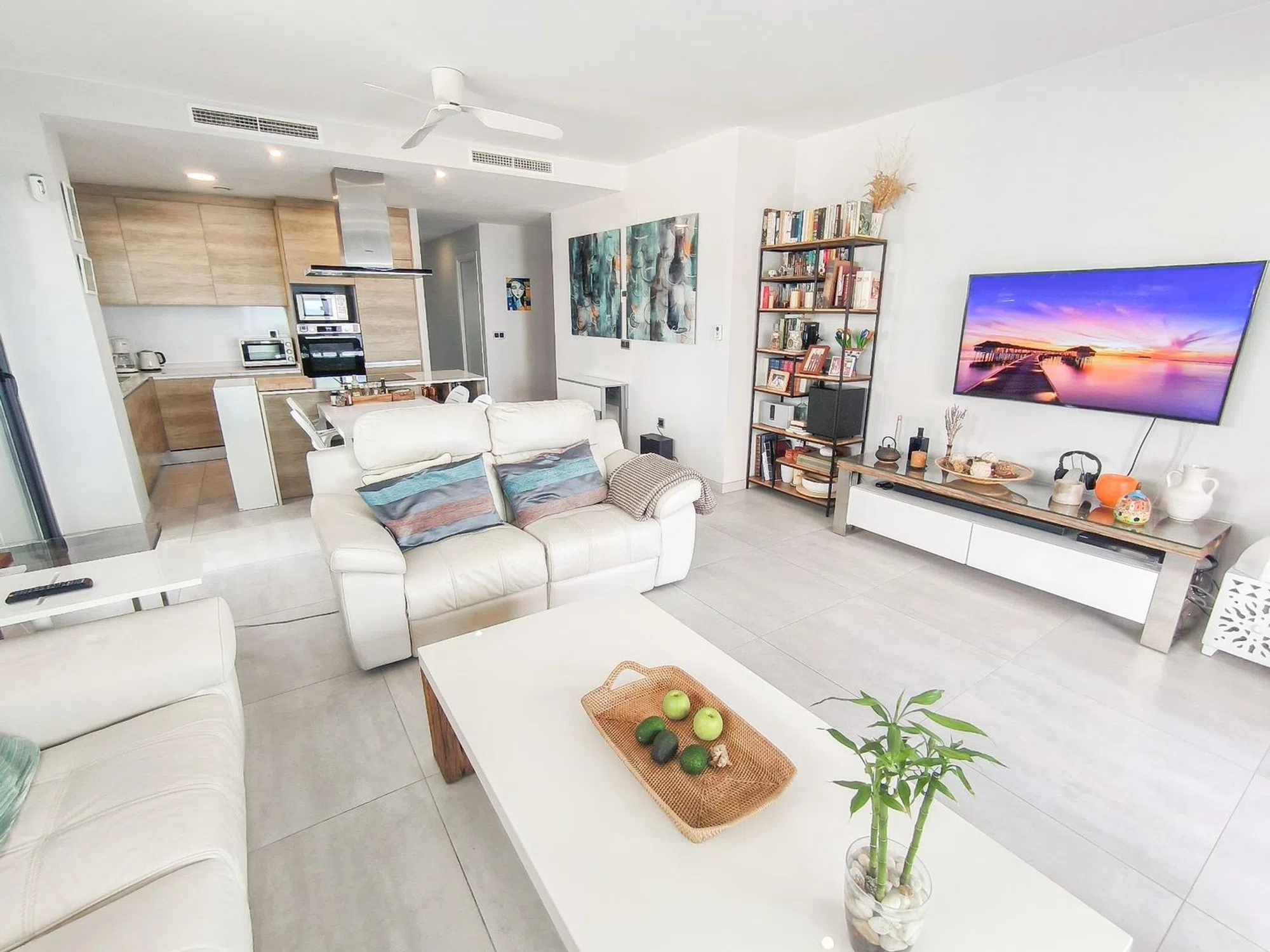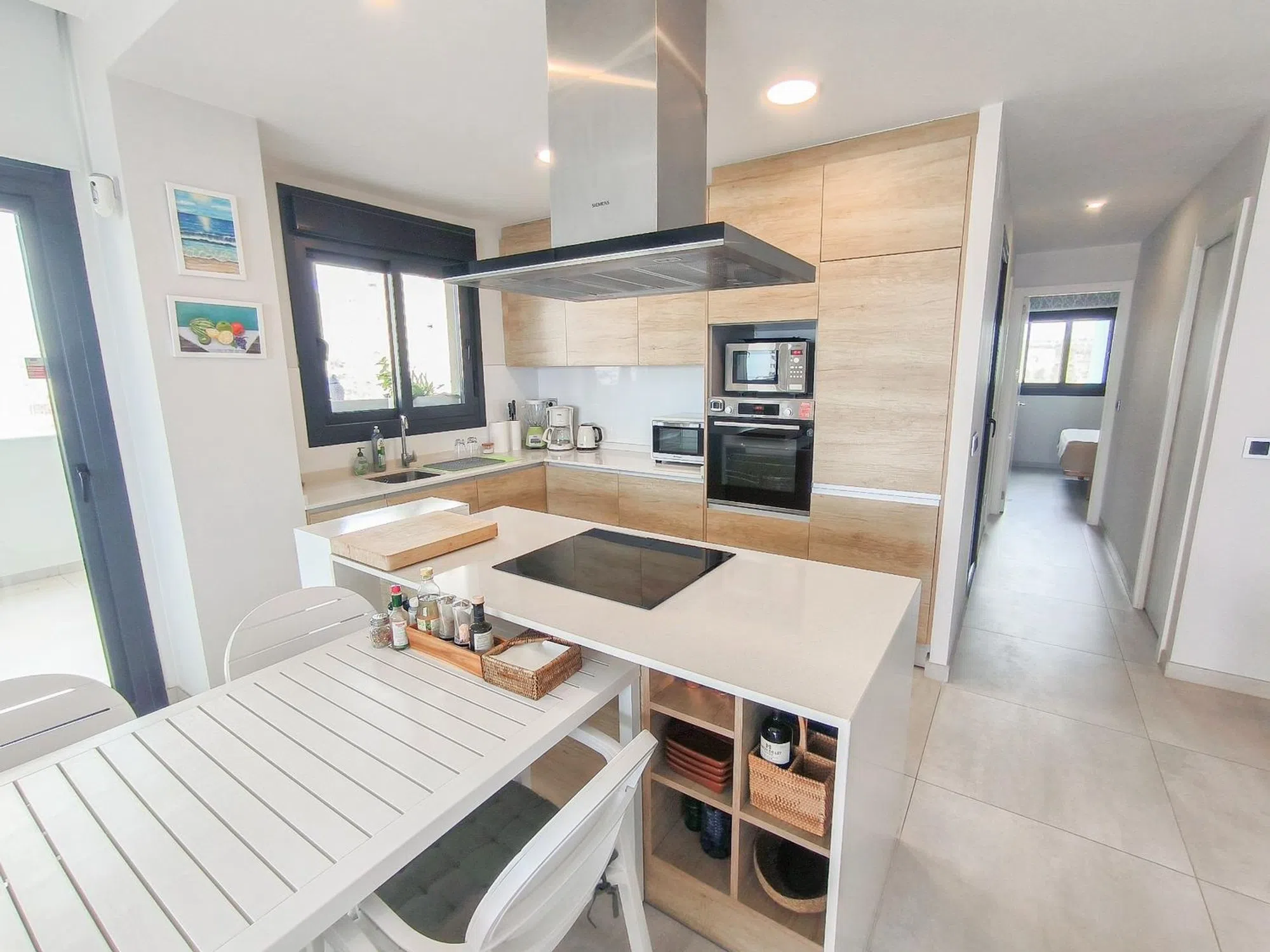 Inmobiliaria LES DUNES ofrece este magnífico piso de lujo se encuentra en la moderna urbanización Sunset Waves, a solo 150 metros de la Playa de Poniente, en Benidorm. Es una vivienda en esquina, muy luminosa y con una ubicación inmejorable cerca del mar. Ideal tanto para vivir todo el año como para disfrutar de unas vacaciones exclusivas junto al Mediterráneo. La propiedad dispone de tres dormitorios y dos baños completos, ambos con suelo radiante para mayor confort. El salón-comedor es amplio y está conectado con una moderna cocina americana con isla, equipada con electrodomésticos Bosch de alta gama. Todo el espacio ha sido diseñado con estilo y funcionalidad, ofreciendo un ambiente cómodo y elegante. El piso cuenta con dos grandes terrazas abiertas, por un total de 45 m², perfectas para relajarse o compartir momentos especiales mientras se disfrutan de unas vistas al mar impresionantes. Además, incluye una plaza de garaje subterránea numerada y un trastero situado en la misma planta del piso, lo que añade un plus de comodidad. Sunset Waves ofrece unas instalaciones de primera: piscina exterior climatizada, jacuzzi, sauna, gimnasio, pista de tenis, pista de pádel y amplias zonas comunes ajardinadas. Todo ello en un entorno moderno, seguro y bien cuidado. Una oportunidad única para vivir con estilo en una de las mejores zonas de Benidorm.