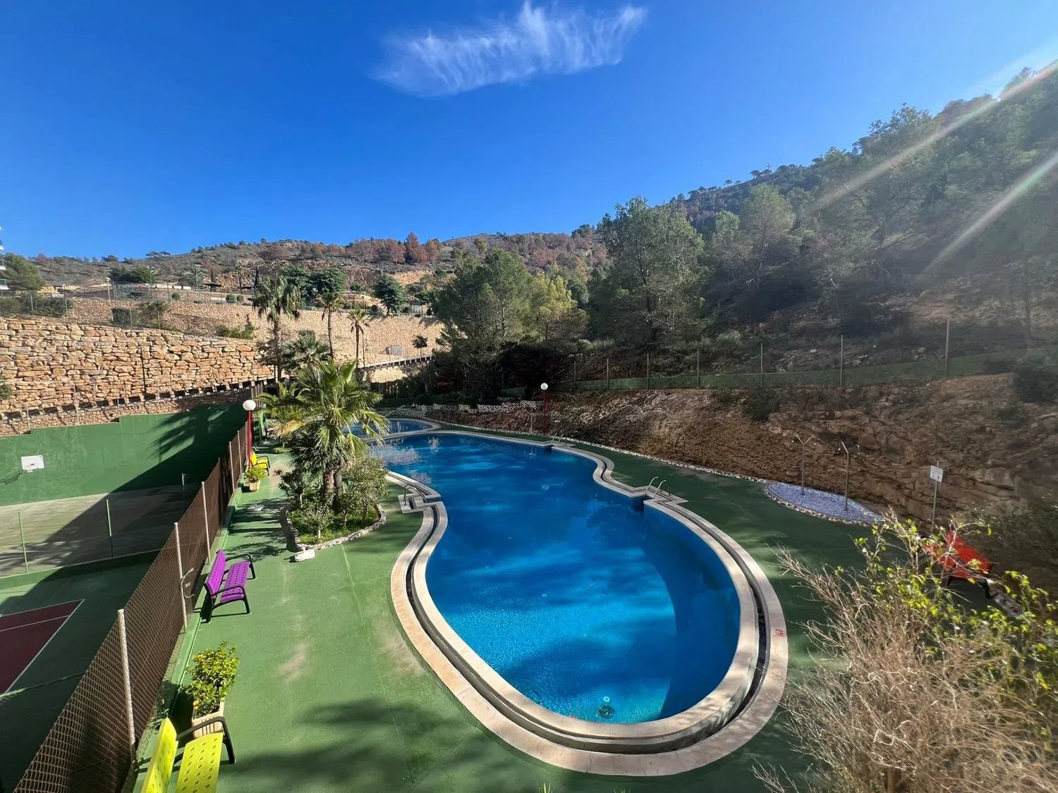 Oportunidad única en Benidorm: Apartamento de 89 m² con excelentes comodidades Descubre este encantador apartamento en venta, idealmente ubicado en la vibrante ciudad de Benidorm. Con una superficie construida de 89 m², esta propiedad se distribuye de manera funcional y acogedora, ofreciendo un salón comedor luminoso, una cocina equipada, dos cómodos dormitorios y un cuarto de baño completo. El apartamento se vende amueblado, lo que te permitirá disfrutar de tu nuevo hogar desde el primer día. Su orientación sur garantiza abundante luz natural durante todo el día, creando un ambiente cálido y acogedor. Además, el precio incluye una plaza de garaje subterránea, brindándote comodidad y seguridad para tu vehículo. La comunidad ofrece una variedad de servicios que mejorarán tu calidad de vida: relájate en la piscina comunitaria, disfruta de momentos deportivos en la pista de tenis o deja que los más pequeños se diviertan en el parque infantil. No pierdas la oportunidad de vivir en este maravilloso apartamento en Benidorm, donde la comodidad y el ocio se combinan a la perfección. ¡Contáctanos para más información y para concertar una visita!