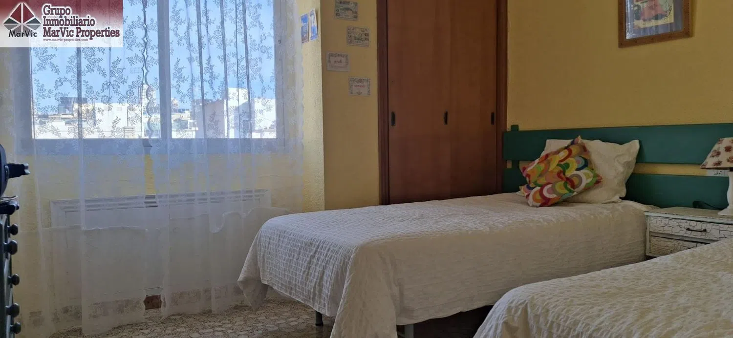1. Piso → Piso en Benidorm zona Centro, 80.00 m. de superficie, 2.00 m2 de terraza, 150 m. de la playa, 2 habitaciones dobles y una habitación sencilla, un baño, propiedad para Entrar a vivir, cocina equipada, carpinteria interior de madera, orientación noreste, suelo de gres, carpinteria exterior de aluminio. Extras: agua, armarios empotrados, ascensor, balcón, línea telefónica, luminoso, luz, muebles, t. v. , terraza, autobuses, árboles, céntrico, centros comerciales, centros médicos, colegios, costa, golf, hospitales, montaña, parques, supermercados, tren, vistas despejadas, zona de paso, zonas infantiles Gastos de comunidad: 60 Eur.