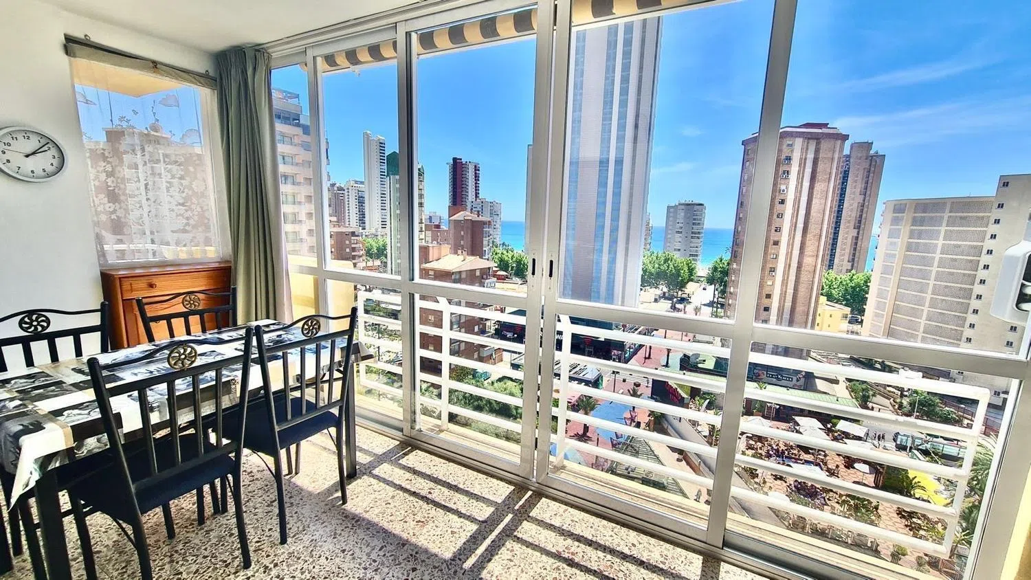 Zusätzlich profitieren Sie von einer schönen Terrasse, die perfekte Möglichkeit bietet, die atemberaubende Aussicht zu genießen. Die Wohnung befindet sich in einem höheren Stockwerk und ist bequem über einen Aufzug erreichbar. Hier erleben Sie entspannte Tage mit direktem Zugang zu den Sonnenuntergängen und der lebhaften Atmosphäre der Umgebung.