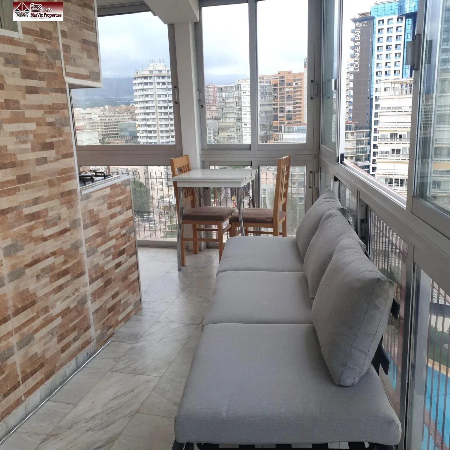 Die Fußböden aus Marmor und die Aluminiumfensterrahmen unterstreichen die hohe Qualität dieses beeindruckenden Apartments. Darüber hinaus gibt es zahlreiche zusätzliche Annehmlichkeiten, die Ihnen von Anfang an das Gefühl von Zuhause vermitteln, wie eingebaute Schränke, ein Aufzug, helle Wohnräume, Möblierung, ein verglaster Balkon und einen Parkplatz. Ein besonderes Highlight ist die Aufteilung in zwei unabhängige Apartments: eines mit einem Schlafzimmer, Terrasse und amerikanischer Küche, und das andere mit zwei Schlafzimmern, einem Badezimmer, amerikanischer Küche sowie einem gemütlichen Balkon-Wohnbereich.