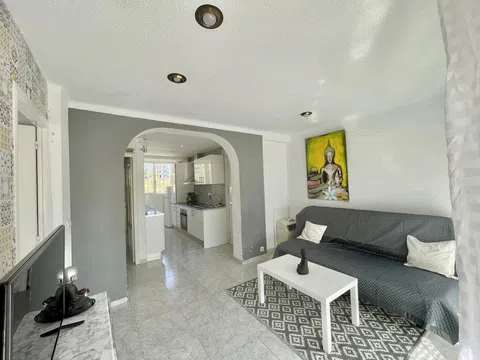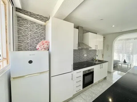 Piso en venta en Benidorm, ubicado en una urbanización privada que ofrece bonitas zonas verdes, piscina comunitaria y parking comunitario. Con 70 m² construidos, este piso se distribuye en 2 dormitorios dobles con armarios empotrados, un amplio salón comedor, una terraza, una cocina independiente totalmente equipada, galería un baño completo con ducha. El piso se encuentra en buen estado de conservación y se vende totalmente amueblado, listo para entrar a vivir. Además, cuenta con aire acondicionado frío-calor, proporcionando confort durante todo el año. El edificio no tiene ascensor. La ubicación del piso es ideal, a tan solo 250 metros de la famosa playa Levante de Benidorm, conocida por su arena dorada y sus aguas cristalinas. Esta ubicación privilegiada permite disfrutar de la playa y del mar en cuestión de minutos. Además, el piso se encuentra cerca de las dos avenidas más demandadas de Benidorm: Avenida Mediterráneo y Avenida Europa. Estas avenidas son conocidas por su amplia oferta de servicios y comodidades, incluyendo supermercados, cafeterías, farmacias y un centro médico. El entorno ofrece una gran variedad de servicios a poca distancia, lo que permite realizar todas las actividades diarias sin necesidad de utilizar un vehículo. La proximidad a tiendas, restaurantes y otros servicios esenciales hace que la vida diaria sea cómoda y práctica. En resumen, este piso ofrece una combinación perfecta de comodidad, ubicación y servicios. Es una oportunidad única para adquirir una propiedad en una de las zonas más deseadas de Benidorm, ideal tanto para residir como para disfrutar de estancias vacacionales. No pierdas la oportunidad de vivir en este maravilloso entorno con todas las facilidades a tu alcance.