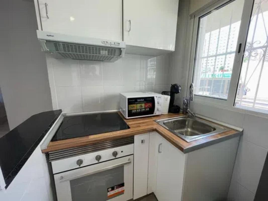 Apartamento en venta en Benidorm, situado en la zona Levante en una urbanización con piscina comunitaria. Tiene 37 m2 construidos distribuidos en 1 dormitorio doble, salón comedor, terraza acristalada, cocina americana totalmente equipada y 1 baño completo con ducha. El apartamento dispone de aire acondicionado frío-calor. Está reformado y se queda completamente amueblado, listo para entrar a vivir. El apartamento se ubica a unos 300 metros de la fabulosa Playa Levante, muy cerca de la famosa Plaza Triangular. Está rodeado de todos los servicios: supermercados, cafeterías, restaurantes, paradas de autobús, … y a unos 3 minutos andando de la calle más comercial de Benidorm, la calle Gambo. La playa Levante con una longitud de 2.084 metros de costa, su agua está perfectamente balizada, es de arena fina y es posiblemente la más reconocida de Benidorm. Se identifica por la iluminación de su paseo, caracterizado por una hilera continua de farolas que va de una punta a otra de la playa. Está muy céntrica y tiene un fácil acceso. De las dos playas principales (Levante y Poniente), es la más visitada por los turistas, principalmente extranjeros. Está situada frente al Rincón de Loix y abarca desde la parte final de la Sierra Helada, hasta el centro de Benidorm. Si busca un apartamento con una estupenda ubicación en muy buen precio, este es el suyo.