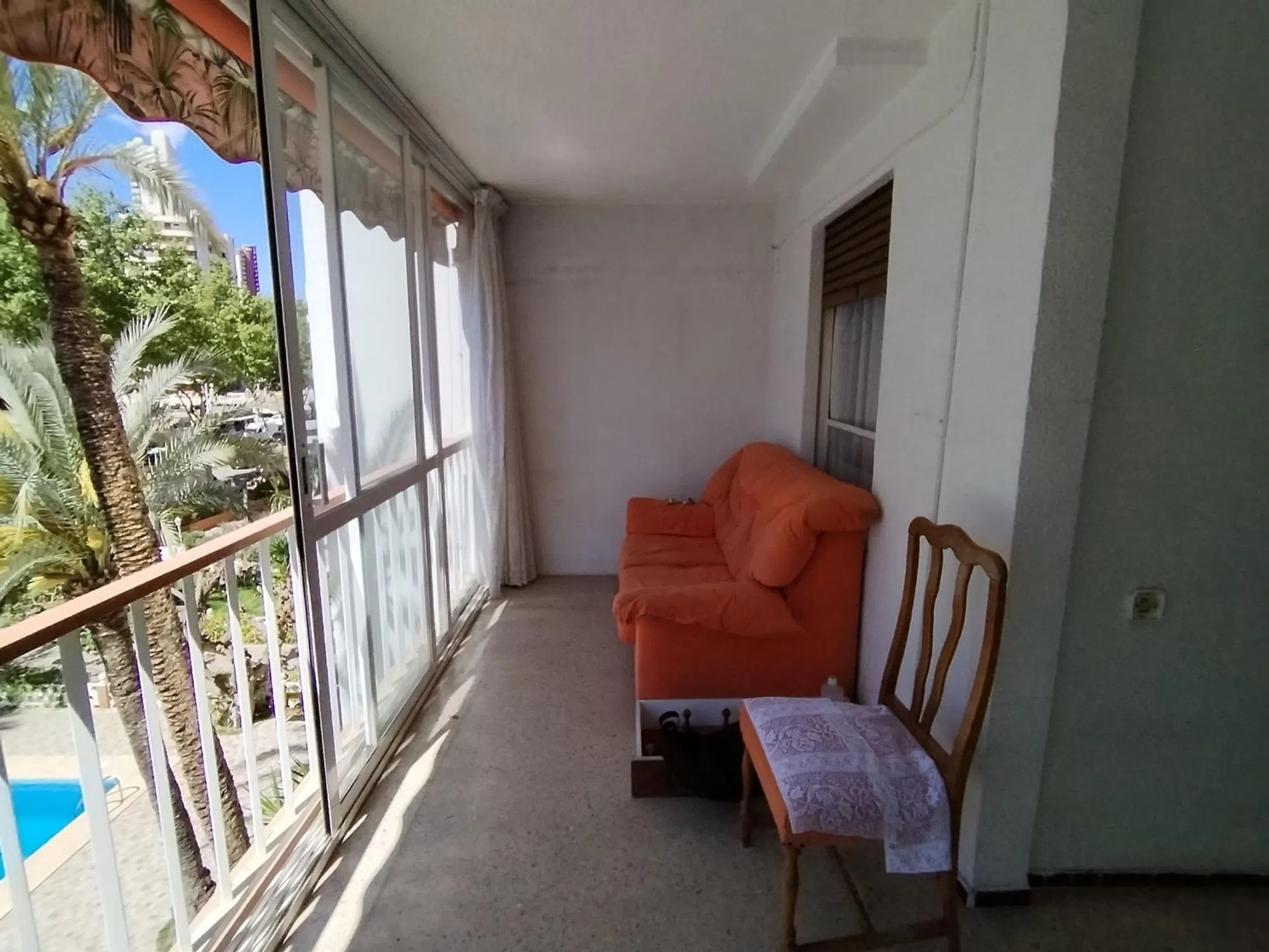 Apartamento en Benidorm zona Levante, 81 m. de superficie, 75 M2 útiles. 12 m2 de terraza, 60 m. de la playa, 3 habitaciones dobles, 2 baños, propiedad De origen, cocina vacía, carpintería interior de madera, orientación sureste, suelo de terrazo, carpintería exterior de aluminio. esta para reformarlo íntegramente y dejarlo a su gusto. Situado en segunda linea de playa Levante. Extras: ascensor, jardín, piscina comunitaria, terraza, terraza acristalada, video-portero, autobuses, árboles, céntrico, costa, supermercados, vistas despejadas, zona de paso, parking comunitario incluido Gastos de comunidad: 90. -€/mes. ibi: 700. -€ al año.