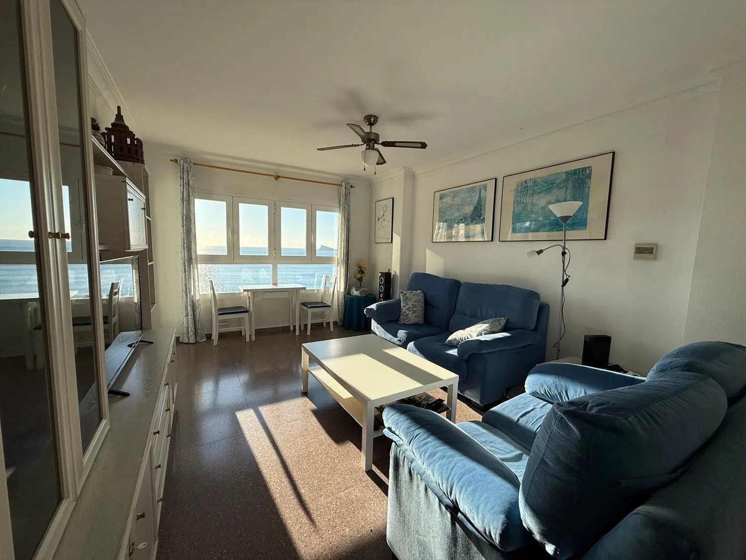 Se vende fabuloso y amplio piso de tres dormitorios en Poniente. La vivienda se distribuye en tres dormitorios dobles, uno de ellos con baño en suite. Todos ellos cuentan con armarios empotrados. Ambos baños son exteriores. El dormitorio principal da acceso a una terraza con magníficas vistas al mar. La vivienda se vende completamente amueblada. Las zonas comunes incluyen piscina, zonas ajardinadas, pista de tenis y acceso directo a la playa. En el precio de venta se incluye una plaza de garaje.