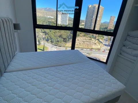 SAIN PROPERTIES pone al alcance de tu mano exclusividad, diseño y vistas espectaculares en el corazón de Torre Sakura, en la Playa de Poniente de Benidorm Te presentamos este moderno piso de esquina en una de las urbanizaciones más prestigiosas de la zona: Torre Sakura. Construido en 2023, este elegante hogar combina diseño contemporáneo, calidades premium y un entorno privilegiado para ofrecerte una experiencia de vida inmejorable. La vivienda dispone de dos dormitorios y dos baños, además de un amplio salón-comedor con cocina de concepto abierto. Sus ventanales de suelo a techo inundan el espacio de luz natural, creando un ambiente cálido, moderno y acogedor. Desde el salón se accede a una impresionante terraza de 19 m² con vistas panorámicas que te dejarán sin aliento. Se ha cuidado hasta el último detalle: armarios empotrados, puertas lacadas en blanco, cocina equipada, sistema de climatización por aerotermia para frío y calor… Todo pensado para tu máximo confort. Y eso no es todo: el precio incluye plaza de garaje y trastero. Además, podrás disfrutar de más de 4.000 m² de zonas comunes con una espectacular piscina desbordante con carril de nado, zona de relax con jacuzzi, piscina infantil, aseos y duchas, parque infantil y amplias zonas ajardinadas con pérgolas y bancos para desconectar sin salir de casa. Una oportunidad única para vivir con estilo, tranquilidad y todas las comodidades. ¿Te imaginas vivir aquí? Llámanos y ven a visitarlo, te va a enamorar.