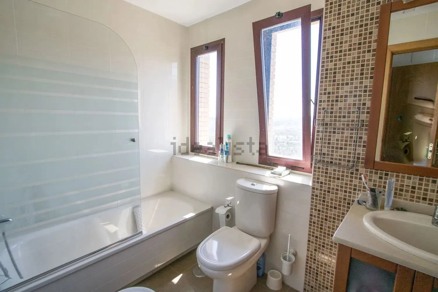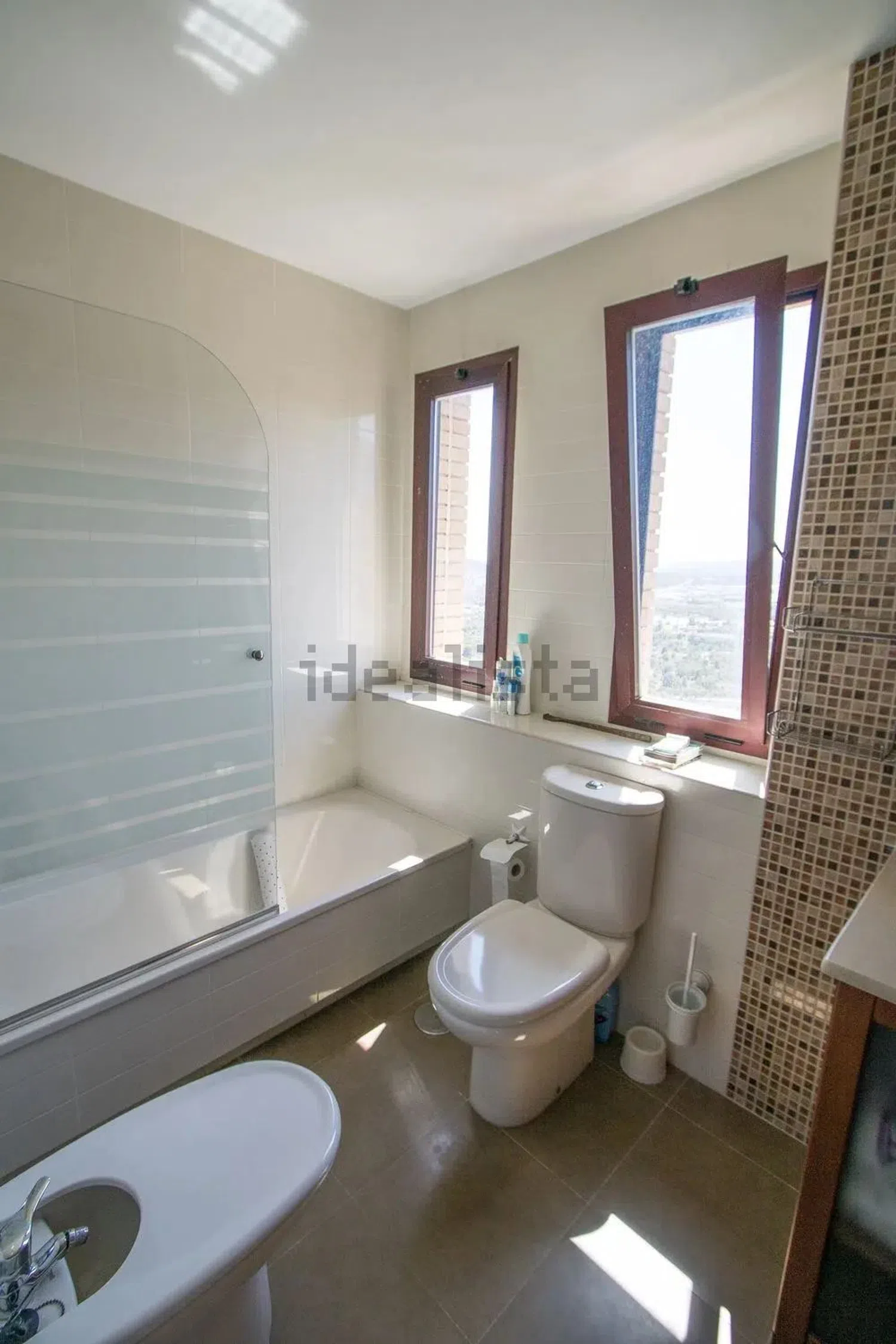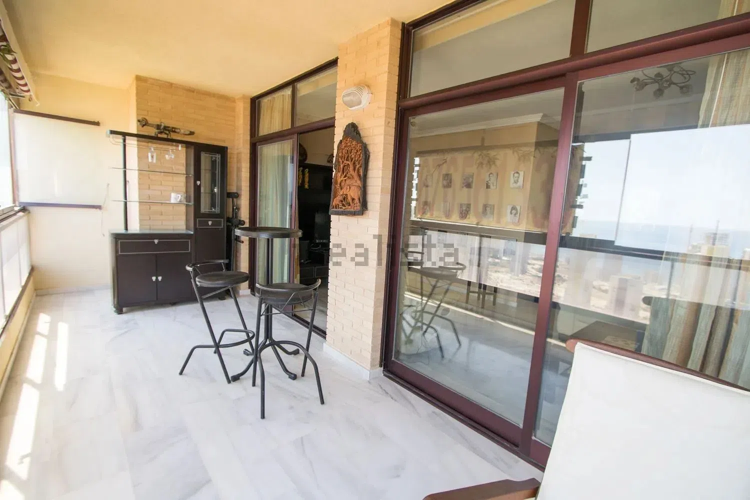 Das Penthouse verfügt über vier Schlafzimmer, von denen eines im Erdgeschoss und die anderen drei auf der oberen Etage liegen. Diese haben direkten Zugang zu zwei wunderschönen Terrassen, die jeweils atemberaubende Aussichten – eine auf das Meer und eine auf die Berge – bieten. Zu den Annehmlichkeiten gehören außerdem zwei vollständige Badezimmer sowie ein zusätzliches WC im Erdgeschoss.