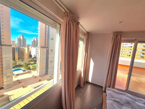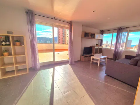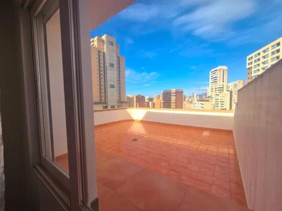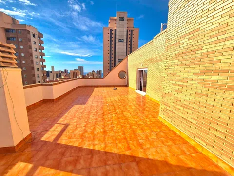 Impresionante ático de 2 dormitorios con 2 increíbles terrazas Presentando en exclusiva a nuestros clientes este gran ático de 2 dormitorios y 2 baños. Esta propiedad ocupa toda la planta superior del edificio y, al entrar en su propio nivel privado, tiene una amplia zona de recepción. Hay un dormitorio espacioso y luminoso con armarios empotrados y un gran ventanal con vistas a la primera de dos amplias terrazas. Hay un baño recién reformado con ducha de alta presión, inodoro y lavabo. La suite principal está llena de luz natural gracias a sus grandes ventanales con las vistas más espectaculares de toda la ciudad. Tiene grandes puertas dobles que dan a la primera de sus amplias terrazas privadas. El dormitorio principal tiene armarios empotrados y el espacioso baño en suite tiene un gran ventanal y está equipado con un baño completo con ducha de alta presión, lavabos dobles e inodoro. El pasillo conduce a un amplio y luminoso salón-comedor. Cuenta con una cocina independiente totalmente equipada con electrodomésticos y magníficas vistas desde todas las estancias del ático. El amplio salón da a una de las terrazas más grandes de Benidorm, con vistas panorámicas al mar y a la montaña. La propiedad cuenta con portero automático, alarma, internet de fibra óptica, dos plazas de aparcamiento privadas, un trastero privado con llave y una hermosa piscina comunitaria rodeada de césped y palmeras, que ofrece abundante sombra natural. El ático se encuentra a pocos minutos a pie de todos los servicios y de la famosa Playa de Levante, y está en el centro tanto del casco antiguo como del nuevo. Esta oportunidad única lista para entrar a vivir está disponible para verla con nosotros y es única ya que ningún ático en Benidorm tiene un espacio exterior tan grande.