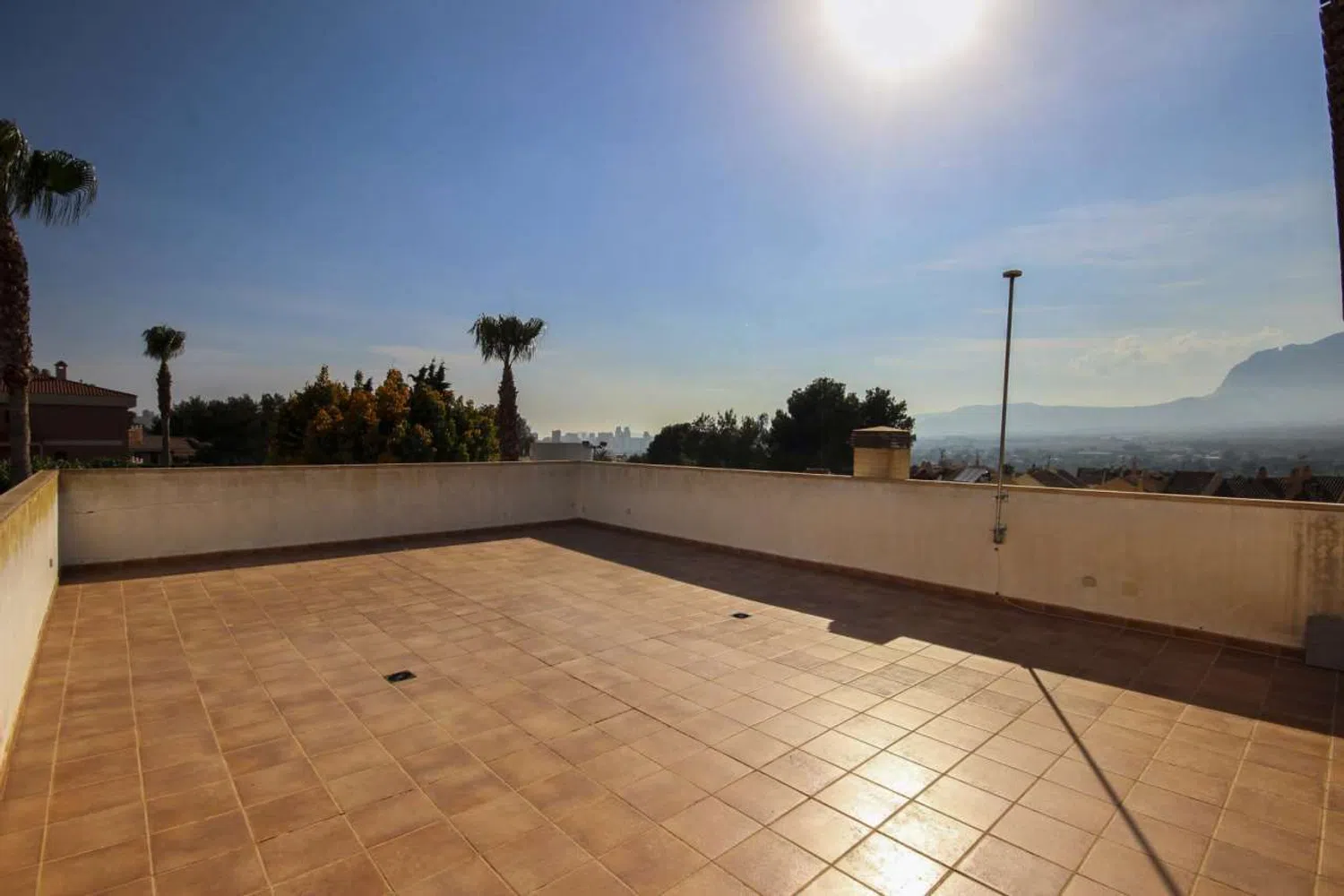 Im ersten Stock lädt ein weiteres Wohn- und Esszimmer mit Kamin zum Entspannen ein. Dort sind drei geräumige Schlafzimmer untergebracht, ebenfalls mit Badezimmer en Suite, wobei eines über ein privates Ankleidezimmer verfügt. Von der großzügigen Dachterrasse genießen Sie atemberaubende Ausblicke auf die umliegenden Berge.