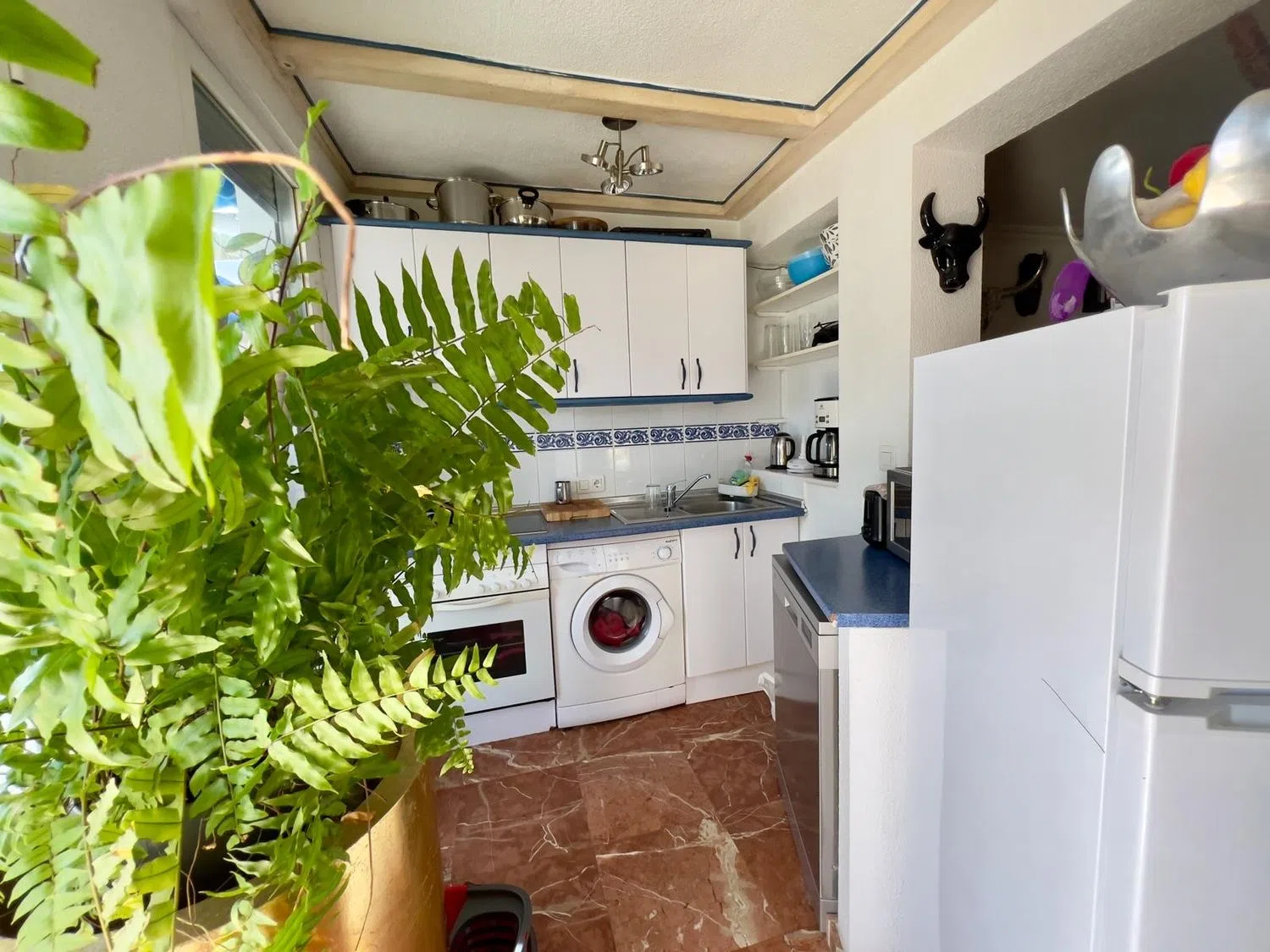 Ein besonderes Highlight ist die großzügige Terrasse mit atemberaubendem Meerblick, die ideal ist, um entspannende Momente zu genießen und die malerische Landschaft zu bewundern. Im Garagenbereich befindet sich zudem eine separate Einheit mit Küche und Bad, die sich hervorragend für Gäste eignet oder als zusätzlicher Raum genutzt werden kann.