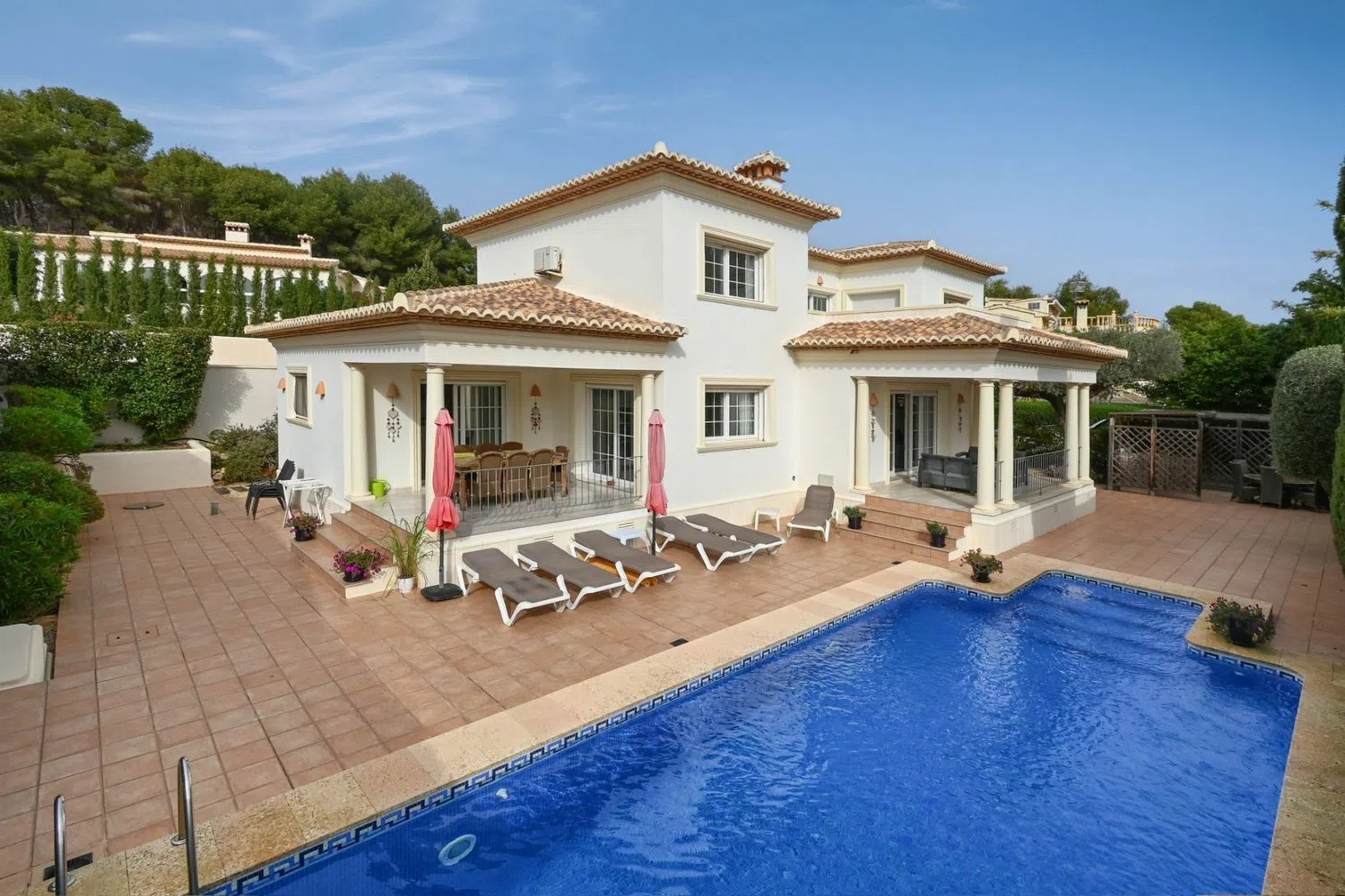 Entdecke dein persönliches Paradies an der Costa Blanca! Diese beeindruckende, unabhängige Villa bietet dir die perfekte Symbiose aus Privatsphäre, Komfort und Eleganz. Eingebettet in eine ruhige und grüne Umgebung, besticht die Immobilie durch ihre moderne Architektur und durchdachte Raumgestaltung. Mit einer Wohnfläche von 280 m² verfügt sie über vier Schlafzimmer, drei moderne Badezimmer und ein helles, großzügiges Wohnzimmer.