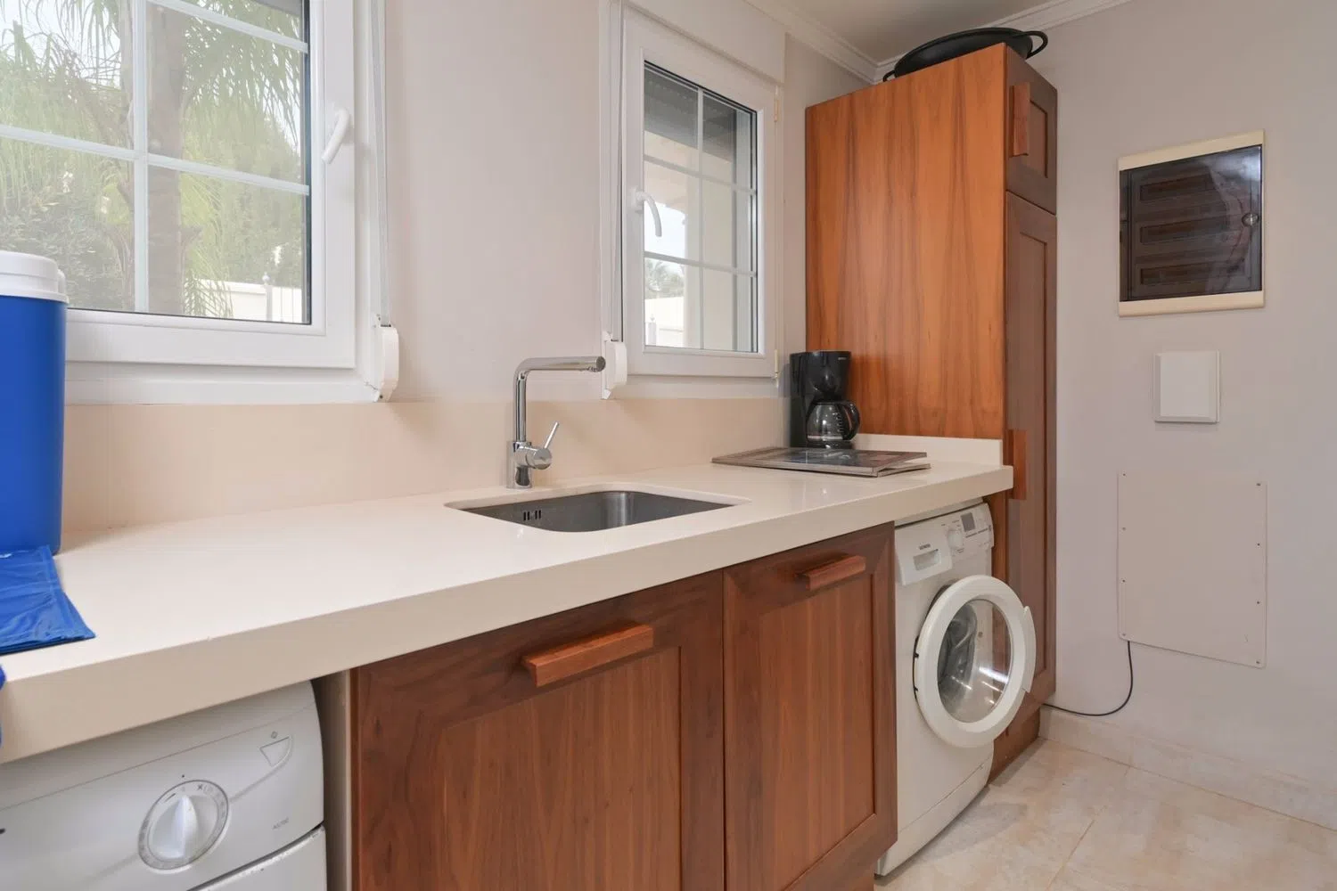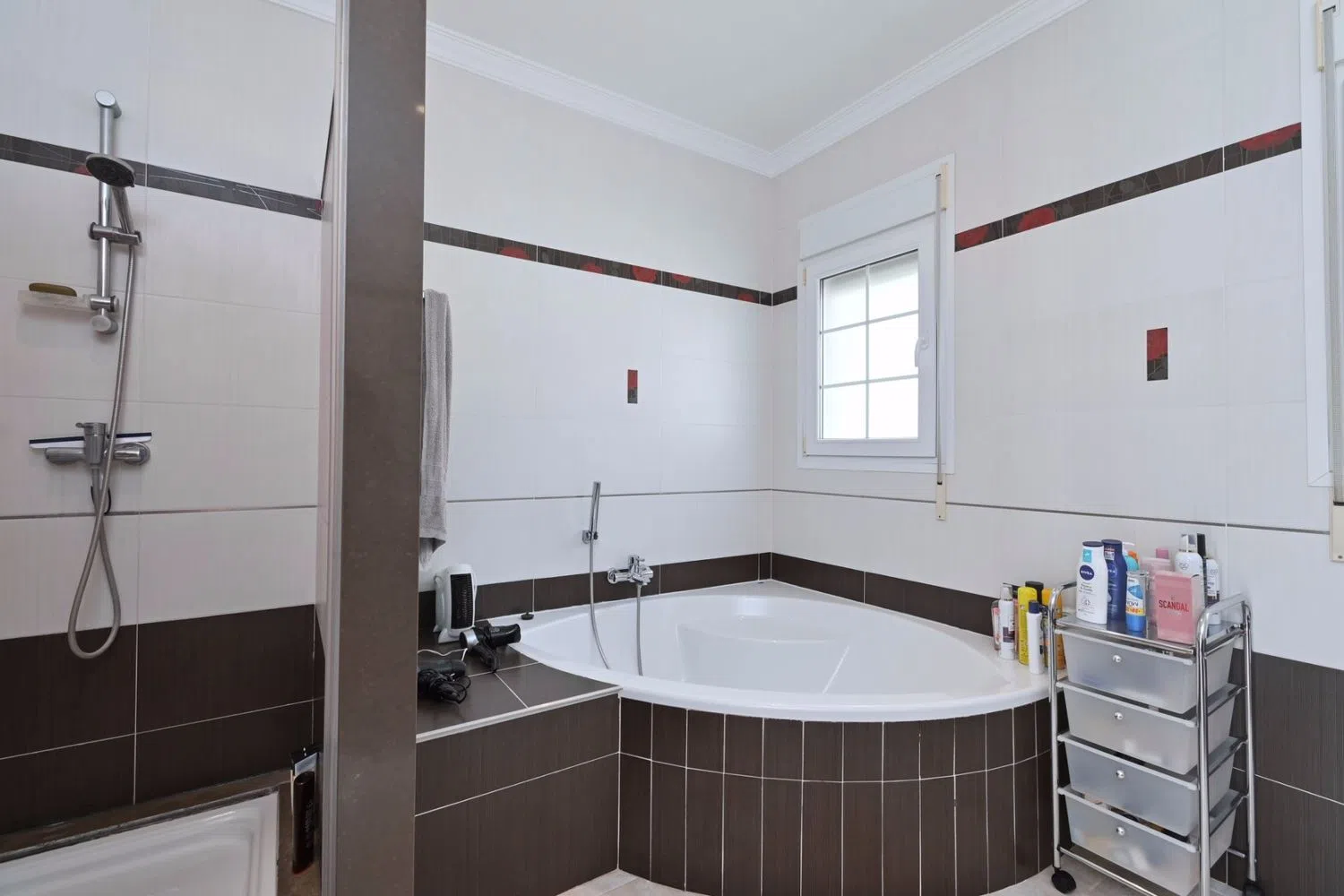 Genieße deinen eigenen Außenbereich mit einem privaten Pool von 9 x 4,5 Metern, einer weitläufigen Terrasse und einem Grillbereich – ideal für gesellige Zusammenkünfte mit Familie oder Freunden. Die Küche ist vollständig ausgestattet, und der Wäscheraum verfügt über Waschmaschine und Trockner für zusätzlichen Komfort. Zwei Schlafzimmer befinden sich im Erdgeschoss, während die anderen beiden im Obergeschoss liegen, alle mit eigenem Bad, welches Intimität und Gemütlichkeit gewährleistet.
