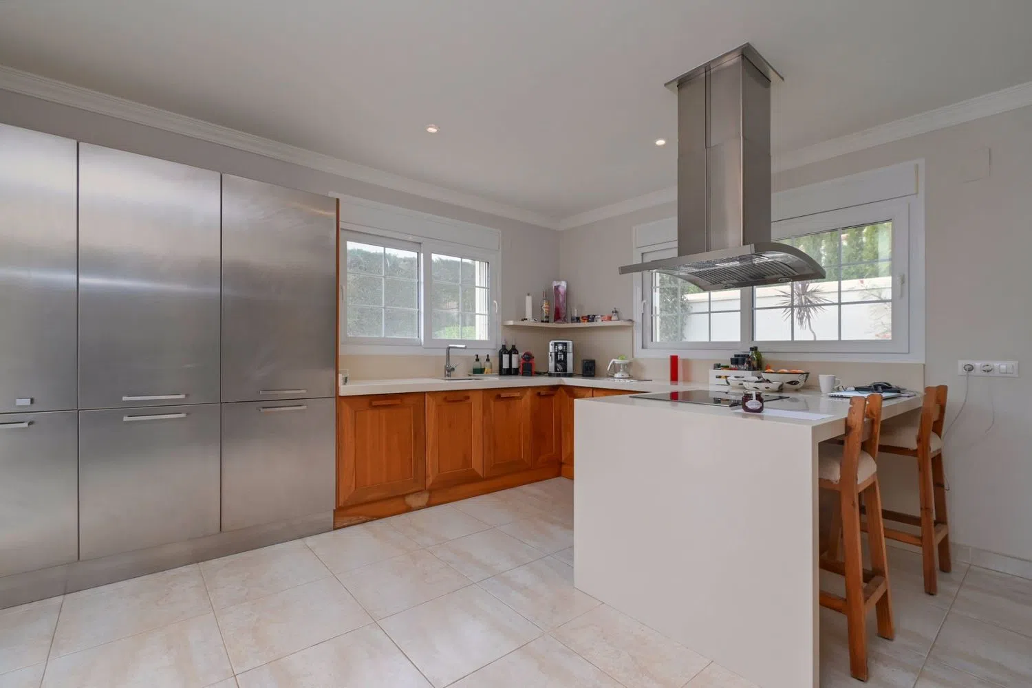 Die atemberaubende Aussicht auf das Meer und den ikonischen Peñón de Ifach wird dich begeistern. Das vollständig eingezäunte Grundstück von 829 m² bietet Sicherheit und Privatsphäre, während der pflegeleichte Garten es dir ermöglicht, das mediterrane Klima ohne Sorgen zu genießen. Darüber hinaus steht dir eine überdachte Garage zur Verfügung, und elektrische Heizungen sorgen das ganze Jahr über für Bequemlichkeit.