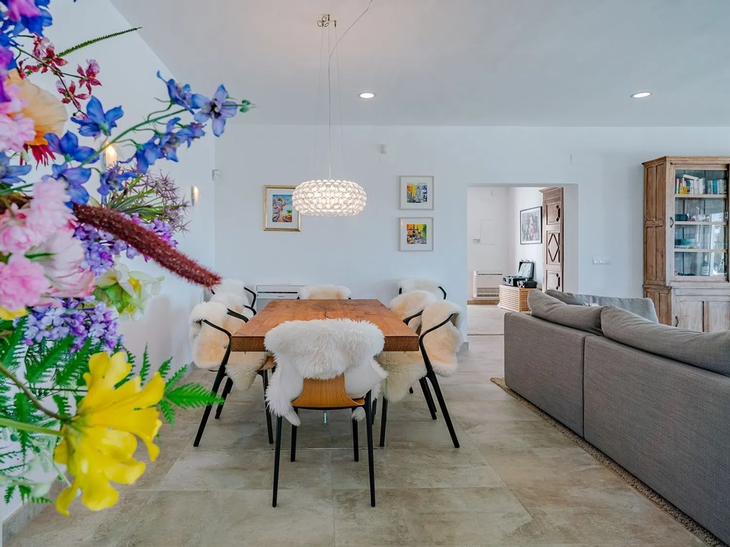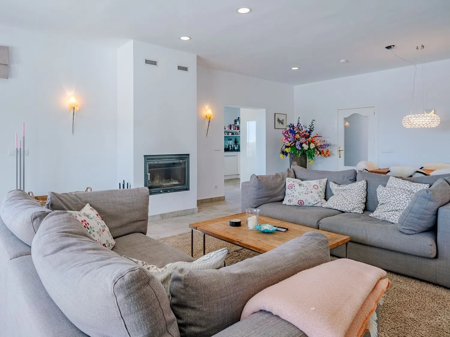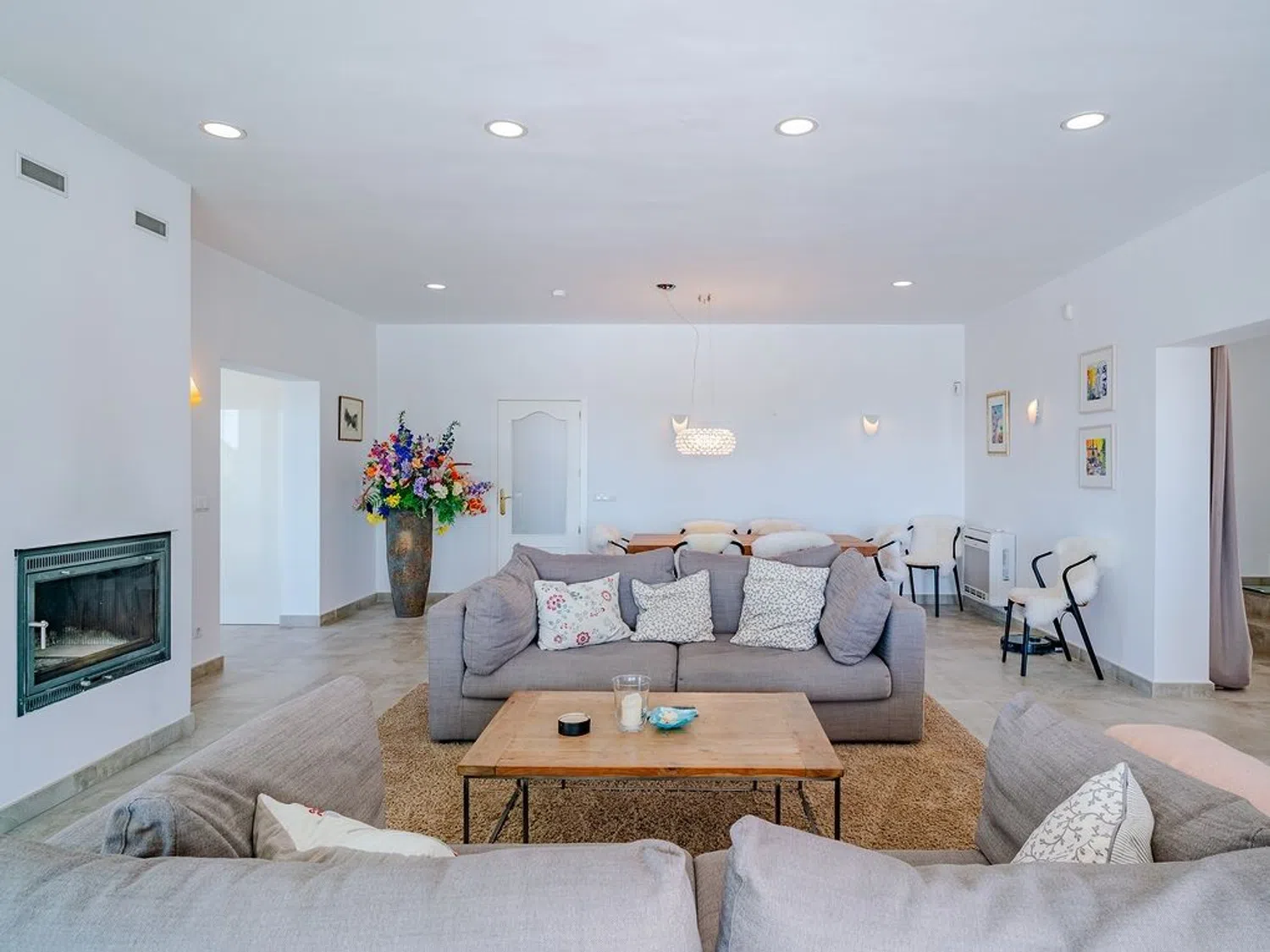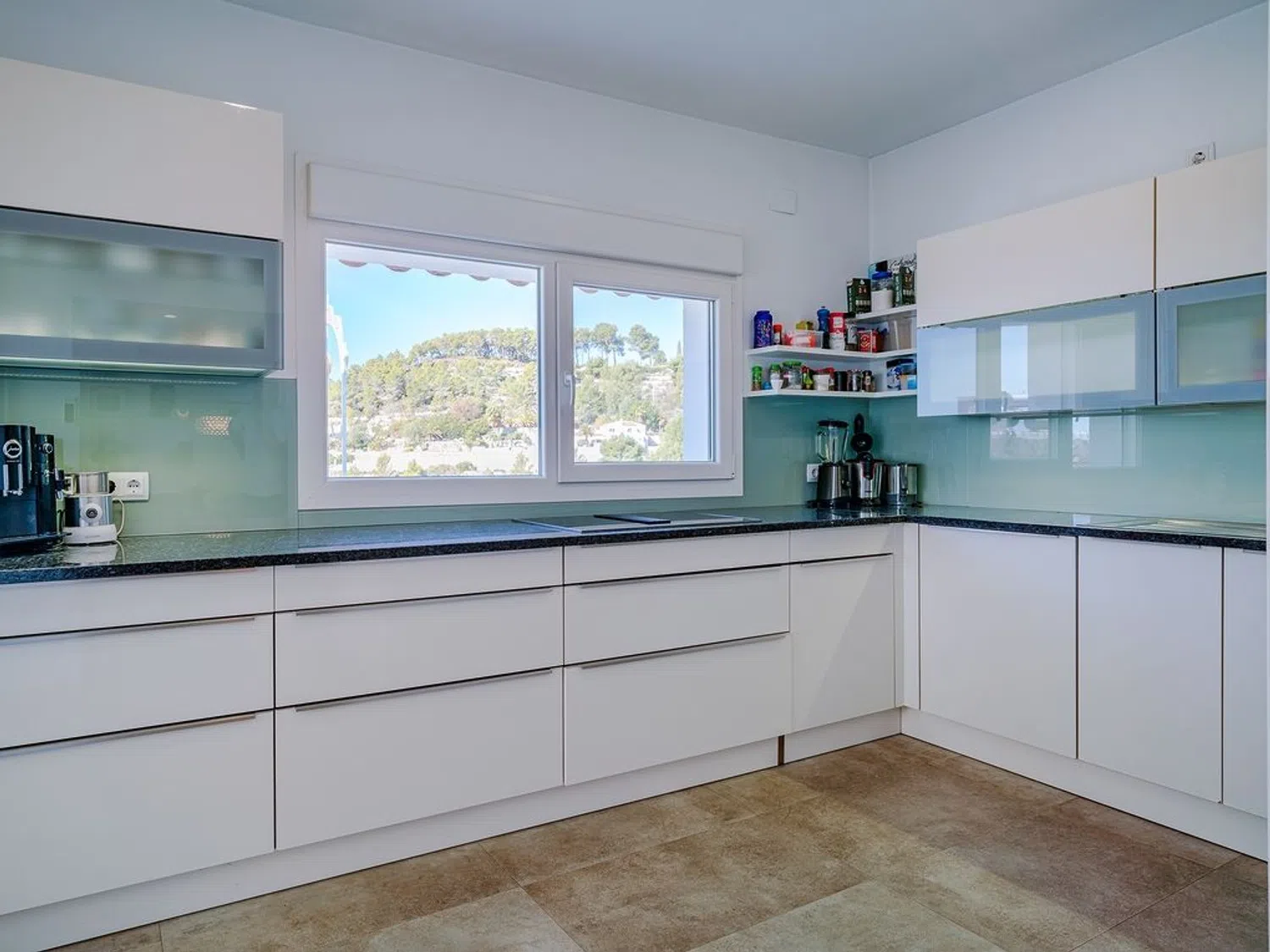 Von der Terrasse am Pool hat man das Gefühl, sich auf einem Boot zu befinden, mit der Costa Blanca und dem wunderbaren Blau des Mittelmeers buchstäblich zu Füßen. Auf zwei großzügigen und gut gestalteten Ebenen, die von natürlichem Licht durchflutet sind, bietet die Villa eine perfekte Kombination aus mediterranem Stil und allen modernen Annehmlichkeiten. Im Hauptgeschoss befinden sich ein geräumiges Wohnzimmer mit Essbereich und Kamin sowie der direkte Zugang zur beneidenswerten Poolterrasse, eine teilweise offene, voll ausgestattete Küche mit verglaster Naya, ein Gäste-WC und ein kleiner Hauswirtschaftsraum.
