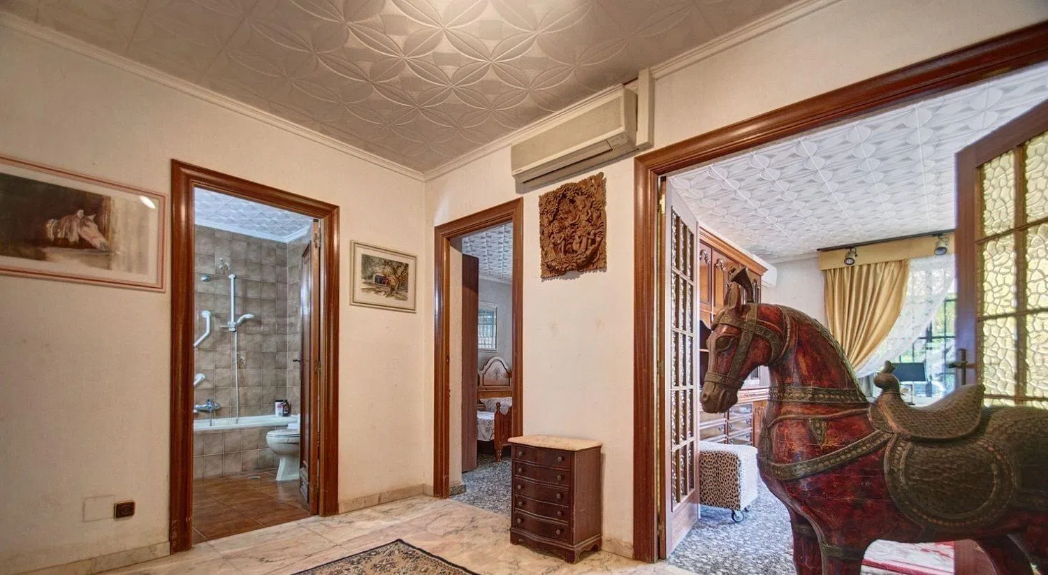 Als besonderes Highlight gibt es innerhalb des Anwesens ein Reitstall mit acht Ställen und sieben Pferden, die das Herz eines jeden Pferdeliebhabers höher schlagen lassen. Das Haus bietet zudem die Möglichkeit, die Einrichtung nach Ihren Wünschen anzupassen, sodass Sie eine persönliche Note setzen können.