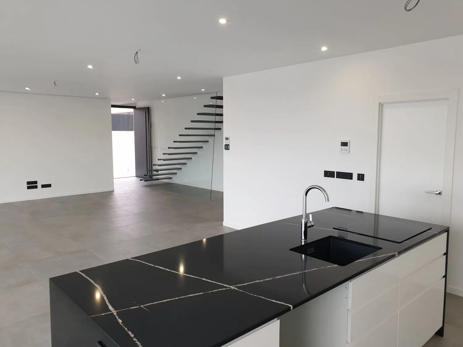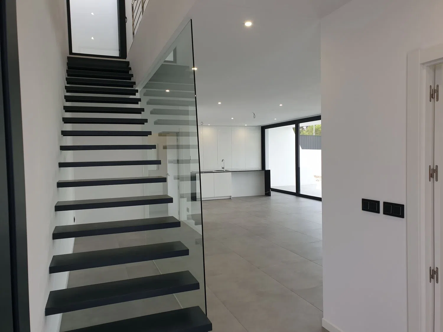 Aufteilung der Villa Obergeschoss: In diesem Bereich befinden sich drei Schlafzimmer, von denen jedes Zugang zu einer privaten Terrasse und einem eigenen Badezimmer hat, was jedem Familienmitglied einen intimen und entspannenden Rückzugsort bietet. Erdgeschoss: Hier finden wir ein geräumiges Wohn-/Esszimmer, das nahtlos mit einer modernen Küche mit Kücheninsel verbunden ist. Dieser offene Raum fließt direkt zur Terrasse, dem Pool und dem Garten über und schafft eine ideale Umgebung für Geselligkeit und Entspannung. Ebenfalls im Erdgeschoss befinden sich ein Gäste-WC, ein Hauswirtschaftsraum sowie ein großzügiges Schlafzimmer mit begehbarem Kleiderschrank und eigenem Bad.