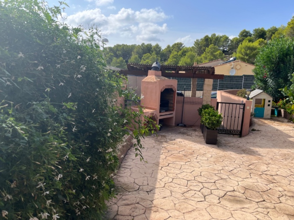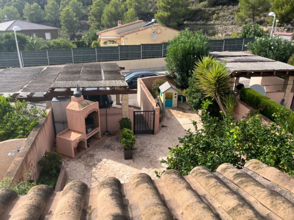Die Terrasse, ein besonderer Ort dieser Immobilie, erstreckt sich großzügig und bietet den perfekten Platz, um die Ruhe der Umgebung und die panoramischen Blicke auf die Berge zu genießen. Das Grundstück, geschmückt mit Bäumen und einem charmanten Garten, verfügt sogar über einen Grill, um deine Gäste mit köstlichen Mahlzeiten im Freien zu begeistern.