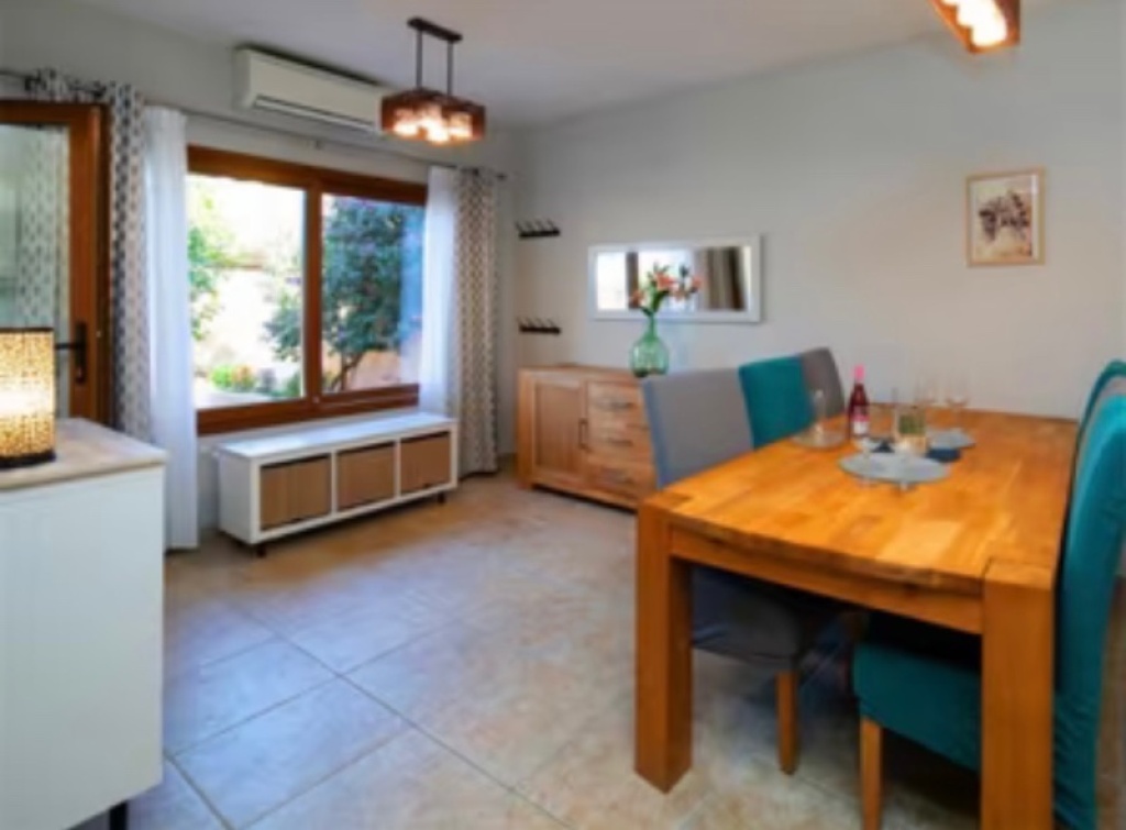 Auf einem Grundstück von 212 Quadratmetern heißt dich diese Residenz mit einer einladenden Veranda willkommen, ausgestattet mit einem Tisch und Stühlen, die ideal sind, um an warmen Sommer- oder Frühlingabenden im Freien zu speisen. Die offene Küche, die an einen großzügigen Essbereich grenzt, schafft einen perfekten sozialen Raum, um unvergessliche Momente mit Familie und Freunden zu teilen.